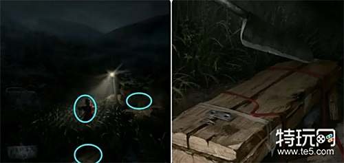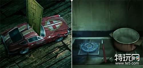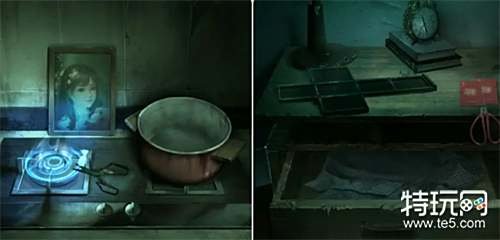 进入石洞用钥匙打开木门进入房间,先拿走灶台处的「火钳」和炕柜抽屉里的珍珠耳环,再用腕饰割开炕柜上的胶带拿到柜子里的木像和杂色蜡烛。