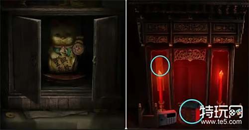 完成箱子里的皮影游戏(先记住左边出现的皮影,再到右边将其找出来,这里可以记住它们的特点,比如男;女;烟;喇叭;锣)获得铜镜,到纸人庙将其放在供桌上(镜面对准新娘)打开左侧的窗户拿到祈愿牌,最后出去将祈愿牌交给二爷爷触发剧情,第四章结束。 第五章 魂归 寅时 03:19 平旦