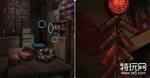 来到婚庆店门口触发与二爷爷的对话,之后用小旗子打开婚庆店的门,接着进入店内拿走角落里人偶模特头上的红盖头,然后用其打开右边的抽屉拿到里面的喜烟,最后点击柜子上挂着的电子鞭炮,根据鞭炮亮起的顺序完成游戏获得小零件。