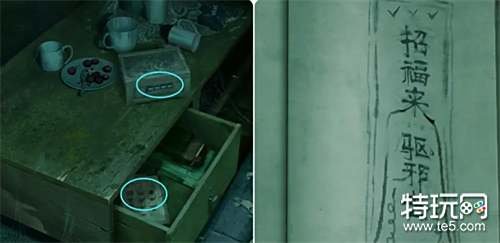 客厅里可以拿走茶几抽屉里的折纸图纸,打开电视机将音量调到最大激活外面走廊里的声控灯获得提示情债难偿,接着调整茶几上的盒子机关组成情债难偿四字即可打开盒子获得纸扎剪刀。 注:厨房与卫生间暂时进不去,这里先转身到侧卧那里根据《谈招阴之物》书里的提示用除冰铲清理门上的虎头贴,再将咒符贴在上面并用眉笔补齐咒符驱赶侧卧里的纸人。