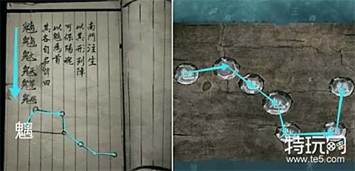 打开宗祠右边的柜子观察最上一层的密字书,根据第二页的内容调整供桌上北斗的文字,完成后即可解除祠堂护阵。 注:北斗第二星缺失一个文字,按密字书中的北斗形状排列文字再将其到转过来,即勝 & 尊天火旨离。