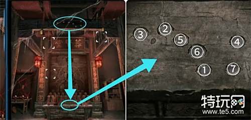 用手机观察房梁上的北斗星,记住它们亮起的顺序并完成下面供桌上的机关。