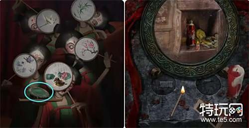 按上图打开桌子下面的柜子获得刺绣,再和断箭组成团扇,接着到戏台那里将团扇放在人偶手中获得古镜。