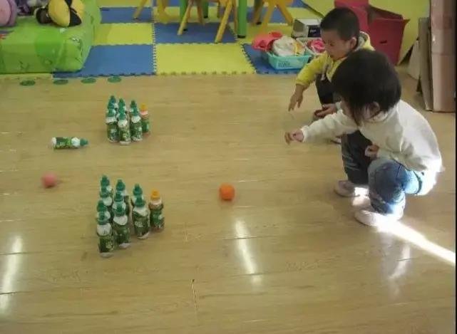 一个人蒙上眼睛,另一个人给他喂可以吃的或者喝的东西,看一共猜出多少种。 这个游戏可以很好的开发孩子的味觉哟。如果家有 挑食的宝宝,不妨让他尝试下他最不喜欢吃的食物。 6. 小小保龄球