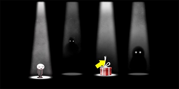 3、接着按照教程提示,向右滑动手指,来让小人移动,直到看到礼物盒。