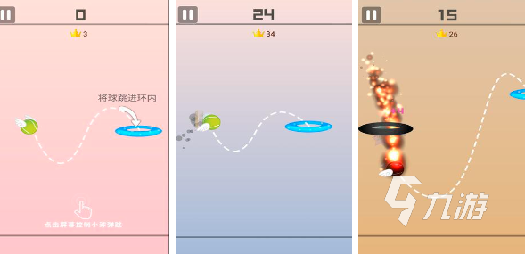 跳一跳大冒险很多小伙伴都在玩,小球跳跃方式进行前进,小球弹跳的时候可以参与投篮,让小球跳入篮筐之中。游戏里会有一个蓝色圆环,而玩家要小球跳进圆环里面才能顺利得分。慢慢前进吧! 3、《功夫跳一跳》