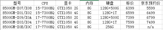 屏幕也继承了飞行堡垒一贯的配备——低端的TN屏幕。 一套“祖传”设计的新品,仍然卖到6000+的价格,这就十分不厚道了。最便宜的ZX53VD i5版还把内存降到了4G,又是逼着用户自己加内存的节奏。 散热方面,根据初步实测,ZX53VD的cpu达到85度时,频率会缓慢下降。对于一般游戏来说影响不大,一些对CPU要求很高的游戏(比如文明6)就可能受到影响,尤其是搭载i7处理器的版本。 表面温度倒是出人意料控制得不错,键盘区域普遍不高于40度。 小结:华硕一次炒冷饭的升级,模具还是老样子,价格却没有惊喜。虽然机器仍然保留了一些ROG元素,但老套的设计和保守的温度控制不能满血发挥i7的性能,也怪不得在国内一直不把这台机器列入ROG系列销售了。 推荐指数:3星 4、三星 8500GM 玄龙骑士——预约中,1月16日开售 ![]() ![]() 三星在CES2017上发布了全新的游戏本系列“Odyssey”——奥德赛,在大陆为了迎合市场口味,起了一个本土化的名字——玄龙骑士 (容我先吐槽一下这个名字真的很杀马特。。) 目前这款笔记本京东尚未开售,没有实物评测和拆解,以下分析内容来源于京东的参数表、商品宣传文案及youtube上一些海外媒体的CES现场上手视频;待到进一步测试出结果后会补充。 ![]() (型号末尾数字为奇数的是黑色,偶数的是白色。A、B、C按10、11、12看) 这次抢购价表明了三星进入游戏本市场的决心,三星笔记本市场部应该很重视这次在国内的首发推广,最低配优惠幅度达800元,虽然没有宏碁的4999那么逆天,但对比前面的游匣和飞行堡垒,还是有明显优势。 外观上推出白色版本,是目前游戏本中较少拥有白色版的系列之一,为消费者多提供了一个选择;占据主流的还是黑色版本。 机身材质是全塑料,LOGO似乎有不少人吐槽丑?见仁见智,这里笔者不多做评价。 和暗影骑士一样,全线8G内存、预装固态硬盘保证了用户的体验,无需额外升级开机就能用得挺爽。500G硬盘很明显是为了杀性价比缩下去的,小失望。 另外,这块预装SSD必然不会太高端,个人估计就是三星自家的CM871a。 屏幕——全线使用1080p分辨率的IPS屏,在去年这算不上什么优势,而今年许多一线品牌(宏碁、戴尔、华硕)和二线品牌(微星、神舟、雷神等)的部分游戏本,都把屏幕缩水到了可视角度低、色彩差的低端TN屏,三星使用IPS屏就成为了有力的竞争点,哪怕同是45% NTSC的色域覆盖,IPS屏一般都有更好的对比度和观感。至于搭配72% NTSC色域的IPS屏,希望很小,即使有应该也只会出现在高配版本上。 散热——目前没有任何内部结构图和实测,从京东文案中可以知道是双风扇、后出风散热设计,铜管没有详细提及,估计和同类产品一样会使用双铜管串联CPU/GPU。底部大面积的进风区域就可以保证风扇较充足的进风量。 推测i5版本散热压力不大,i7版本有待进一步测试。 维护性——文案中特地提到了这一点,只需要拆掉三颗螺丝就能升级内存和SSD,这里给个好评。至于能不能拆掉热管方便清灰、换硅脂目前无法下结论(参考戴尔游匣,加内存和SSD只需要拆底盖,清灰则需要拆整机)。 其他——接口布局比较合理,RJ-45以太网、音频输入输出等接口均在左边靠后侧,不会影响左右手移动鼠标。随机自带实时屏显、实时录像等一些游戏实用工具也方便了用户。 小结:一款三星厚积薄发的产品,有一定的竞争力,值得市场和用户关注。三星能否借这次机会在游戏本市场中杀出重围,要看产品进一步的测试结果和三星的营销推广力度如何了。 个人推荐指数:4星 5、联想 拯救者 Y520/Y720——尚未发售 这次联想的步伐慢了一步,在国内没有赶上移动端的GTX1050首发。 不过在CES2017上,联想还是发布了搭载GTX1050/GTX1050Ti的新品,在国内发布之前,我们还是能获知到一些基本信息。
