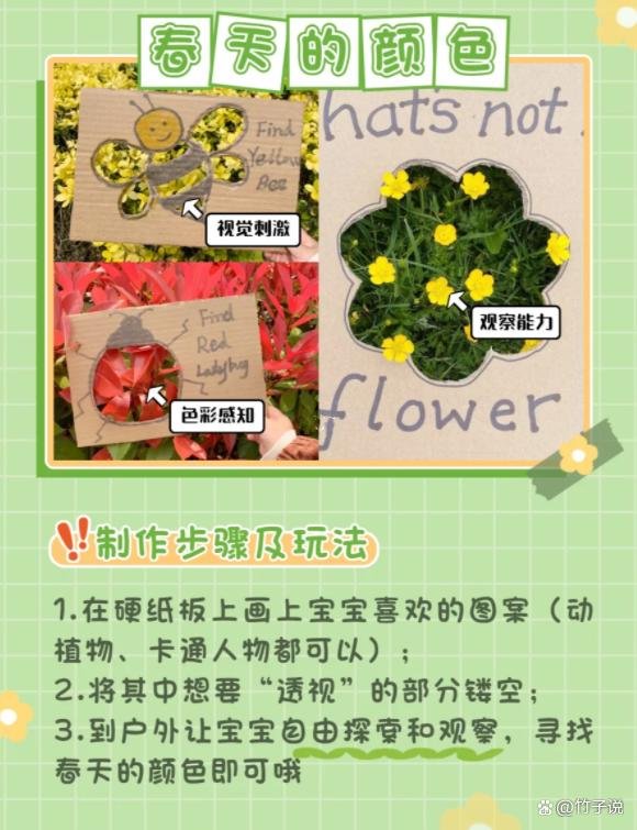 春天来临, 很多大人会随便看下景色, 拍照留念打个卡就觉得很满足, 而孩子会用不同眼光去看世界。 站在山顶, 他们会用耳朵去感受风的声音, 聆听鸟语花香的气息。 站在河边, 他们会用手去感受水的温度, 感受泥巴的湿度, 感受沙子颗粒感。 站在马路旁, 他会观察不同车的颜色, 房子的形状, 身边的行人。 因为对于他们来说, 世界万物都有趣, 都值得被他们欣赏。 ![]() ![]() 让我们静下心来, 和孩子一起用不同的方式, 感受这个世界吧, 让我们的视、听、嗅、味、触、 各种感官一起行动, 拿着清单玩转春天吧。 ![]() ![]() ![]() ![]() ![]() ![]() ![]() ![]() ![]() ![]() ![]() ![]() ![]() ![]() 举报/反馈 |