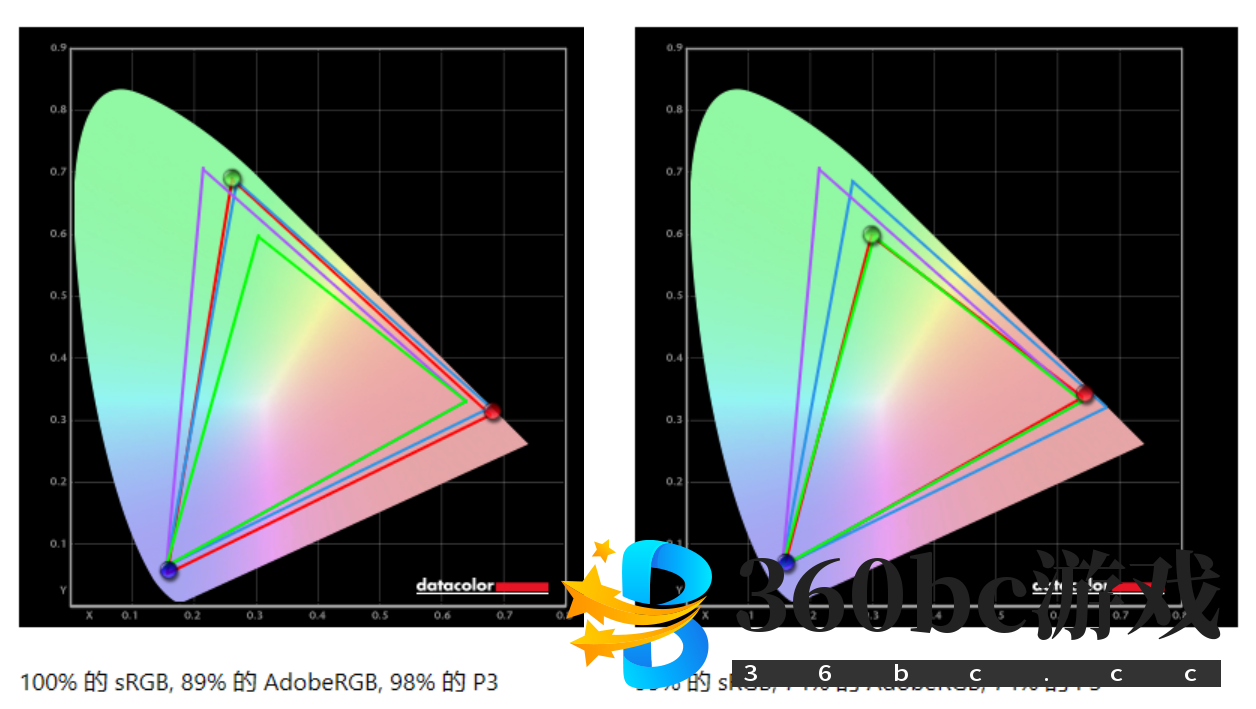 飞利浦279M1RVE是27英寸4K 144Hz IPS显示器,其面板是LG的NanoIPS,同上一代“机皇”LG 27GN950。这是目前最好的4K 144Hz面板,性能远超目前常见的友达2.3和群创E7B等。和普通4K 144Hz显示器不同的是,飞利浦279M1RVE因为面板优势,从而拥有了高达98%的DCI P3覆盖率(基本是目前游戏显示器中最高水平),极快的响应速度,极好的观感以及HDR600支持,这些特性都是其他面板所不具备的。 实际上,如今4K NanoIPS显示器已经有了不少款,飞利浦279M1RVE的售价5199元,并没有很明显的价格优势(别家有4999元的)。但它可能是所有同面板显示器中最特殊的一款,因为它有着独一无二的环景光特效。 何为环景光特效?请看图。下图是我前几天实际拍摄的,并没有使用任何PS和后期,也没有加补光灯。 ![]() 飞利浦的环景光特效和一般的显示器RGB灯不同,大部分显示器RGB灯都在背面,玩家在使用显示器的时候其实根本看不到灯。而环景光特效能够把光效散发到屏幕周围,让玩家在显示器的正面也能看到灯效。 此外,在环景光的“光影同步”模式下,显示器周围的灯光颜色会根据屏幕中显示的图线变化而改变,从而实现“屏幕内容向现实世界的延伸”,这种延伸可以带来更好的游戏沉浸感,大幅度增加(单机)游戏体验。 注:FPS和竞技游戏中不建议使用光影同步,绚丽的灯光可能会吸引玩家的注意力,从而干扰判断。 下图就是光影同步效果展示,屏幕左边和上下是红色只有右边是蓝色,那灯光也会按照屏幕颜色来分布,即左边蓝,上右下红。光影同步效果肉眼看起来比照片中要好很多,照片中因为相机设置问题导致蓝色不够明显。 ![]() 此外,还有“光音同步”模式,也就是让灯光随着游戏声音/音乐进行有规律的波动。 那么,有人会问,环景光的意义是什么呢? 答:当然是看起来很cooooooooooool啦! 环景光是如何实现的呢? 其实很简单,显示器背面四周有一圈LED灯(底部也有,只是挡住了没拍出来),内部还有一个特殊的灯效控制芯片。秘诀正是在芯片上,LED灯谁都能做,但是显示器上控制灯实现光影/光音同步的芯片,目前似乎只有飞利浦一家。毕竟,飞利浦是做照明起家的! ![]() 飞利浦279M1RVE属于飞利浦的旗舰系列,所以它有很好的做工和质感。自带遮光罩,其作用大概是帮玩家减少来自外界的干扰。遮光罩可以拆下来,我就不喜欢用遮光罩,看起来怪怪的,这可能是因为我家只有我一个人,没人会干扰我。 ![]() 虽然外观看起来平平无奇,实际上质感比照片里要很好多,丝毫没有粗制滥造的塑料感。如果不是环景光灯效的话,它在整体上应该偏向于商务风格,成熟稳重,低调内敛。 ![]() 接口方面从左到右:(外置)电源,65W USB-C,DP 1.4(支持DSC),HDMI 2.1 (3个),耳机,USB-B(上行),USB-A(4个)。OSD采用的是非常舒服的摇杆操作。此外,这个角度也能看到底部的LED灯。 ![]() 在图像无损(444,完全动态范围)的情况下,USB-C提供65W的反向充电,给轻薄本使用是足够了,单线就可以同时实现4K 144Hz 8bit输出+激活USB-A扩展接口+充电。此外,DP线可以实现4K 144Hz 10bit,HDMI 2.1可以实现4K 144Hz 12bit。当然,前提是显卡必须支持DSC(RTX20系及以上)或者HDMI 2.1(RTX30系)。 USB-A方面,黄色的接口可以在关机状态下给手机充电,蓝色则不可以。单线连接,即只通过一个USB-C线连接笔记本和显示器,USB-A扩展接口可以激活。双线连接的话,DP/HDMI+USB-C,无法激活USB-A扩展接口;DP/HDMI+USB-B,可以激活USB-A扩展接口。 首先需要重申,NanoIPS是4K 144Hz面板中观感最好的。凡是NanoIPS显示器,观感基本上都明显超过其他IPS面板的显示器。此外,未来可能会有NanoIPS面板搭配MiniLED背光的组合,那就是强强联手,天下无敌了! 0-100%亮度都是DC调光,不闪屏。 抖10bit,接HDMI 2.1也可以调到12bit,不过和10bit无区别。 广色域是NanoIPS的拿手好戏,在默认模式下,达到了惊人的98% DCI P3覆盖率,也可以切换到sRGB模式以消除过饱和问题。 ![]() 默认模式下,白场亮度55~448nit,黑场0.09~0.47nit,对比度900左右。对比度并不算高,这是NanoIPS的天生缺陷。 sRGB模式就比较惨了,亮度锁死457nit,虽然对比度提高到1040,但是亮度锁死意味着:它基本没有实用价值,没人能够忍受450nit作为日常使用,这个亮度对于日常使用来说实在太高了。 ![]() 279M1RVE有HDR600认证。在HDR下,亮度可以达到770-800nit,远超HDR600的标准,比27GN950还要高100nit,而HDR下对比度可以达到4000。 HDR600相比HDR400是质变,HDR600能够让暗处更暗、亮处更亮,从而展示出更好的明暗光影效果、也能更大程度地还原游戏本来的面貌——没错,HDR400游戏的真实色彩和亮度并没有得到充分体现。 ![]() HDR600认证意味着它拥有分区控光。根据测试,分区数为16个,是直下式而不是棋盘式。 ![]() 这里简单说下分区控光。显示器是由面板+背光组成。一般显示器的背光灯珠只能同亮同灭,亮起时所有灯珠的亮度也是几乎一样,也就是“全局控光”。显示器只能通过滤光片遮挡光线来控制屏幕各个区域的亮度。但是因为光线无法被100%遮挡,所以传统显示器在显示黑色的时候会有发灰或者泛白的问题,也就是“暗不下去、黑不起来”。 高端点的显示器会有“分区背光”,一般是8-32个分区,即把背光灯分成8-32个区域,每个区域的亮度都可以独立控制,这样在显示黑色的时候,就能让黑色位置对应的背光灯关闭,从而让黑色能够真正“黑起来”。分区背光有直下式和棋盘式。直下式背光就是每次亮起一整个条状区域,一般8-16个分区
