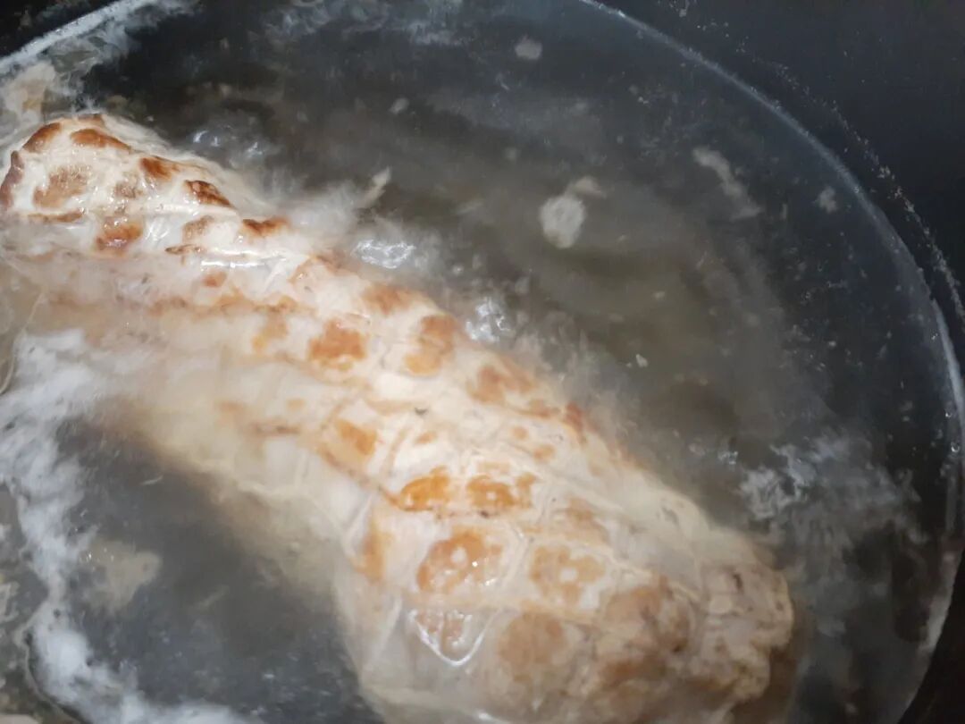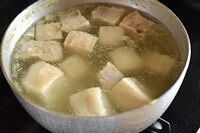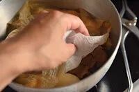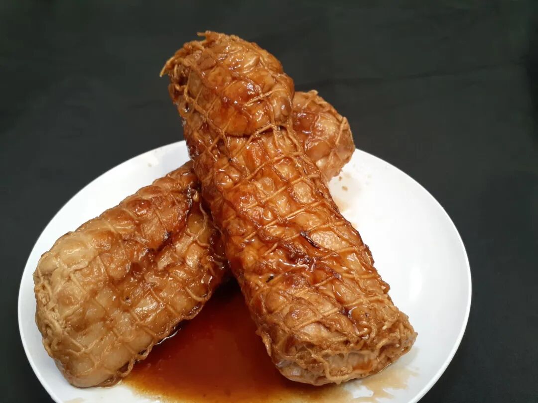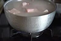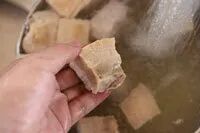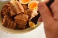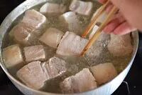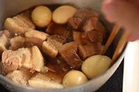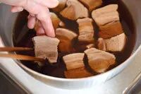 寒露过后,天气渐渐要由凉爽过渡到寒冷,在这种有贴秋膘为借口的时节,或许没有什么比大口吃肉更幸福的事了~ 夏末初秋时小编为大家介绍了能激发食欲的日式贴秋膘料理“猪肉生姜烧”,意犹未尽的转眼间就到了食欲大增的深秋,比起以猪肉薄片搭配生姜制作的香辛爽口风猪肉生姜烧,这次要为大家介绍的则是一道能温暖整个秋天的日式猪肉炖煮料理——猪肉角煮! 猪肉角煮「豚の角煮,buta no kakuni」| gochimaru.com 日式经典角煮之“长崎东坡煮”与“冲绳罗火腿” 在说猪肉角煮之前首先要说说日语中的“角煮「かくに」”是什么,它其实是指将食材切成块状后调味炖煮的料理方式。如今在日本除了常见的猪肉角煮,食材还可以是金枪鱼、鲣鱼、牛肉等,而在素食主义喜爱的精进料理中还有用油炸过的豆腐、魔芋、麸类(由面筋制作而成的食品,一般有生麸和烤麸)或其他蔬菜类角煮。 欺骗吃肉星人感情的车麸角煮 | macaro-ni.jp 在日本,长崎的“东坡煮「とうばに」”和冲绳的“罗火腿「ラフテー」”属于日式经典的“猪肉角煮”,它们也都被认为是由中华料理的“东坡肉”演变而来。 江户时代,日本长崎作为对外窗口与中国人和荷兰人进行往来,也因此逐渐形成一种结合了和式、中式、西式的料理,它就是“卓袱料理”。卓袱料理的“卓”即“桌”,“袱”为“包袱皮、桌布”,在过去长崎人根据中西餐围大桌饮食的方式,按口述及绘画作品制作了大气的餐桌,后来又按照自己的习惯将桌腿锯短,桌面涂上朱红或暗红色漆。 卓袱料理「しっぽくりょうり」| sippoku.jp 作为一种宴会料理,卓袱料理台面上的菜多用较大的器皿盛装,满满当当地摆放整齐,料理品目则混合了和、中、西三种风格。其上菜顺序一般为:餐前酒→御鳍(用鲷鱼制作的汤)→小菜(凉菜)→中钵(热菜)→大钵(季节性煮物)→水菓子→梅椀(汁粉等)。东坡煮一般作为中钵料理出现,是卓袱料理中中华料理的代表。在江户时代晚期时的日本儒学家所写的《饌書》中曾记录了:“东坡煮也称之为东坡肉,是一种苏东坡喜爱的角煮。”长崎东坡煮的做法一般是将猪五花肉以日本酒、酱油、糖、葱、姜与八角等炖煮,有的还会再像做正统东坡肉一样蒸制一下。 东坡煮 | otokonokakurega.com 如今长崎除了东坡煮,还诞生了一种夹入东坡煮的刈(guà)包,当地人称之为“角煮馒头”。1965年,由一位名叫岩崎博孝的人创立了“岩崎本社”并开始出售带着“比东坡煮更简单更好吃”期盼的长崎角煮馒头。 角煮馒头「角煮まんじゅう」| nagasakiyou.net 此外,冲绳的“罗火腿”也常被认为是以中国的东坡肉为原型而来,它相传于日本琉球王朝时代(1429年 - 1879年)出现,其演变一般认为是由琉球人将中国那时的烧肉料理加上日本酱油完成的猪肉角煮雏形。如今其做法通常是将带皮五花肉块先以煎或煮的方式做第一次加热,然后用鲣鱼高汤、酱油、泡盛(一种特产于琉球群岛的蒸馏酒)与黑糖作为卤汁炖煮而来。 罗火腿 | gochimaru.com 不会失败的“猪肉角煮”做法 除了上述两种经典的猪肉角煮,作为一道日式家常菜,其做法根据家庭或地区不同也会存在微妙差异。在这里参考日本「白ご飯」网站分享一道非常简单的日式猪肉角煮做法。 猪肉角煮 | sirogohan.com 食材(5-6人份) 猪五花肉(块状):1kg 淘米水:一锅 鸡蛋(根据喜好):5-6个 生姜:1块(约10g) A、水:400ml A、酱油:5大勺(1大勺=15ml) A、酒:4大勺 A、砂糖:2+1/2大勺 制作方法 1、预处理。购买时选择肥瘦较均匀的猪五花肉,将其切成约4cm的块状后放入准备好的初次淘米水中。根据个人喜好准备姜片和煮蛋,后述成品图中的蛋黄状态为从冰箱取出鸡蛋放入热水中煮9-10分钟后形成的。(*用淘米水煮肉可以去除肉腥味,使肉质更鲜美) 2、预煮猪肉,目的是为了去除多余脂肪和肉腥味,做出清爽不腻的猪肉角煮。预煮的方式是将放入淘米水中的猪肉煮30分钟后再焖30分钟,重复此步骤3次,共3个小时。首先开大火将锅内煮沸,接着稍移开部分锅盖开小火煮30分钟,初次煮沸会有产生很多包括淘米水成分的浮沫,暂时不用撇除,继续煮就会减少,煮30分钟后盖紧锅盖焖30分钟,接着重复此步骤3次。(*过程中无需添水,为将猪肉多余油脂充分煮出来,中途可翻动猪肉) 3、调味。将预煮后的猪肉用流水清洗干净,然后放入平盘中备用。在锅中倒入A中的水、酱油、酒、砂糖后混合,然后放入猪肉和姜片。 4、炖煮。首先开中火将锅内煮沸,然后把火稍微调小一点煮约30分钟,可以在最后2-3分钟时加入煮蛋。半小时后关火,此时煮汁变少,盖上厨房用纸后放置冷却,使猪肉入味。吃之前再次稍微加热一下即可,装盘时可将鸡蛋切成两半并搭配芥末增添色彩和风味。 补充:在最后一步炖煮猪肉中还可添加秋葵、白菜、白萝卜等喜爱的蔬菜;做好的猪肉角煮放入冰箱冷藏可保存3-4天;在第2步预煮猪肉最后可将煮出的漂浮在表面的油脂舀起来,倒入锅中煮去水分后再倒入干净的瓶中冷藏保存,它可用来炒菜。 边吃边玩的“抽积木角煮” 在日本,猪肉角煮作为家常料理受到“吃肉星人”的喜爱,除了单独作为料理,它还可以搭配米饭做成“角煮丼”,或者代替叉烧放入拉面中来吃。除此以外,脑洞大开的霓虹金还曾利用角煮“方方正正”的特性想出了下面这种创(sang)意(xin)十(bing)足(kuang)的吃法▼ 抽积木角煮,是不是很壮观?twitter.com 