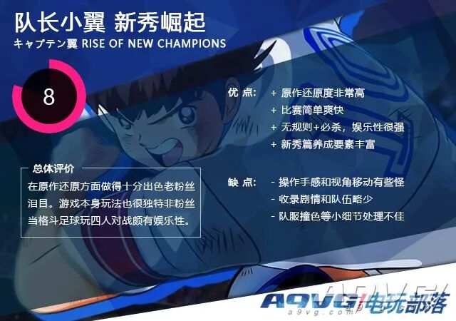 《队长小翼》,俗称“足球小将”或“天使之翼”,可以说是史上最热门的足球题材漫画,大空翼的故事已经传遍了世界的每个角落,亨利、齐达内、梅西、内马尔等顶级球星也都公开表示过对这部作品的喜爱。 然而就这么一个好题材,已经10年没出单机游戏了。提到《队长小翼》的游戏,你脑中浮现的大概率是上世纪90年代TECMO在FC/SFC上推出的那几款,采用类似策略模拟的指令式系统、消费体力使用必杀技、插入大量过场演出、再加入角色培养和剧情要素,当时确立了一种新的玩法可谓风靡一时。虽然之后游戏改编权辗转于万代南梦宫和KONAMI之间,游戏没少出玩法也变来变去,但一直没有什么令人印象深刻的作品。 如今,大空翼他又回来了!配合第四次动画化,万代南梦宫也适时在最新的平台(PS4、Switch、PC)上推出了全新作品《队长小翼 新秀崛起》,咱们今天就来聊聊这款阔别10年的新作。 格斗游戏的目标是什么?把对方的体力槽打空。《队长小翼 新秀崛起》怎么玩?把守门员的体力打空。 本作采用了直接操控场上球员打比赛的动作玩法,操控方式与《实况足球》比较接近,如果你玩过《FIFA》或《实况足球》之类的拟真足球游戏应该会很容易上手。但你玩着玩着就会发现好像哪里不对劲……对,没有裁判!游戏中除了越位出界,根本不存在犯规,你撞人背后铲球什么的完全OK,甚至还有招式那就是冲着人去的,活脱一个热血足球。比赛过程中你会经常看到人仰马翻或是满地乱滚的场面,不像在踢足球简直像在打群架。 原作中的经典必杀技也完全再现。除了必杀射门外,过人、拦截、传球必杀的种类以及展现角色个性的被动技能也十分丰富。必杀使用方法也很简单,只要按特定的键或者蓄力就可以,谁都能轻松用出来。只不过由于不能太影响比赛节奏,必杀演出都比较短,看上去可能有点朴实没有那么华丽。 而比赛的机制其实就是暴捶守门员,华丽的传接配合,角度刁钻的射门,那些传统足球的概念在这里都不好使。你要做的就是用你的射门去消耗守门员的体力,当守门员体力不足时就会被打穿破门。最后谁把守门员打爆的次数多(进球)谁就是获胜者,这跟格斗游戏有异曲同工之妙。 虽然听上去有些扯,但游戏的系统却微妙地保持着不错的平衡性。守门员在被打爆之后会加满体力避免形势一边倒,突破与拦截之间也采用了类似剪刀石头布的机制。此外还有可以大幅提升全队状态或是完美防住一次射门的V ZONE,实际水平差不多人对战比赛会很精彩。 只不过这游戏的操作感和镜头视角会让熟悉《实况》《FIFA》的人有些不适应,例如传接节奏过快球权频繁交替时镜头左右晃动比较剧烈,长时间玩会有疲劳感。 作为一款漫改游戏,对原作内容的展现十分重要,而本作在这方面相当出色。人物的3D造型完全再现了原作的画风,大空翼、日向小次郎、若林源三,那些熟悉得不能再熟悉的角色们通过当下的技术以最完美的姿态呈现在我们面前,游戏玩起来仿佛在看动画一般,甚至比动画画风还要好而且重要的是:作画不会崩。 而故事模式的剧情也同时照顾了原作党和假想党,收录了两个不同的篇章。翼的故事讲述了原作中学篇的剧情,与第四版动画后半段相呼应,玩家要扮演大空翼率领南葛队挑战全国大赛。比赛间隔和比赛过程中都穿插有大量的剧情过场,而一些“剧情杀”虽然会打断比赛节奏但完美还原了原作的气氛。有的比赛上半场对方像开了挂一样,但不必慌张,下半场翼也会直接开挂反扑。 而新秀(自建球员)的故事则是本作原创的剧情,你可以扮演自己加入到东邦、武藏、富良野等学校,与日向、三杉、松山成为队友,先参加国内的选拔赛,然后组建成日本国家队挑战世界强豪,后半段施耐德、皮埃尔、迪亚斯、巴拉(辛塔拿)等,原作中强力的海外选手悉数登场。此外还有美国、塞内加尔等本作新登场的队伍,就是没中国队有点小遗憾。这个篇章中你可以锻炼自己的能力,还可以与其它球员加深感情并偷学他们的技能,包含很多养成要素。最后培养出一个一身必杀技的怪物级球员再放回场上踢比赛特爽。 如果你玩腻了《实况》《FIFA》那种传统的拟真足球,又觉得《热血足球》太过于古老,那《队长小翼 新秀崛起》或许是一个不错的新选择。 像传统足球游戏一样,本作也搭载了比较标准的对战模式,线下最多可以四人游玩,也可以在线联机。可使用的球队会随着新秀篇的剧情解锁,另外你还可以自己挑选球员组建梦幻阵容,培养好的自建球员也可以加入到当中。是让施耐德与迪亚斯组成最强锋线,还是让10个满身必杀的原创球员凑到一起,全凭你自由发挥。 在线的积分排位赛则会对组队加入一些限制,比如初期你的队伍不能超过1100C,这种情况下就得考虑选一些性价比更优秀的人入队,为了省COST大川学(南葛那个最菜的眼镜弟)都能成为你的主力。 在单机游戏加入手游常见的“抽卡”玩法在当今十分流行,不用花真钞票就能抽个爽是其特色。本作中通过在线比赛或完成成就可以积累点数抽取新秀篇的好友卡和道具,还可以购买一些发型等自定义素材,有了这些就更容易培养出更加强大的球员。刷刷爱好者和抽抽爱好者可以在这里找到乐趣。 作为时隔10年的单机新作,《队长小翼 新秀崛起》比较好地展现了原作的特色,而以往游戏化作品中常见的体力、必杀技演出、角色扮