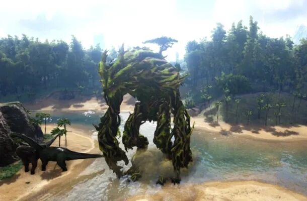 灭绝地图和孤岛一样也是采用3+1的方式,唯一不同的就是三大泰坦可以驯服。 森林泰坦 浑身包裹着植物的巨大树人。
