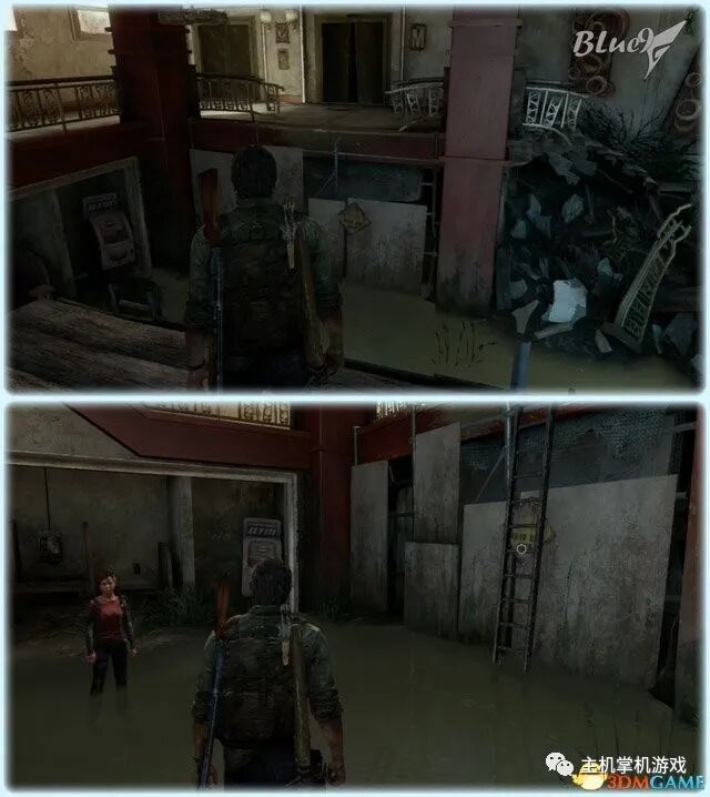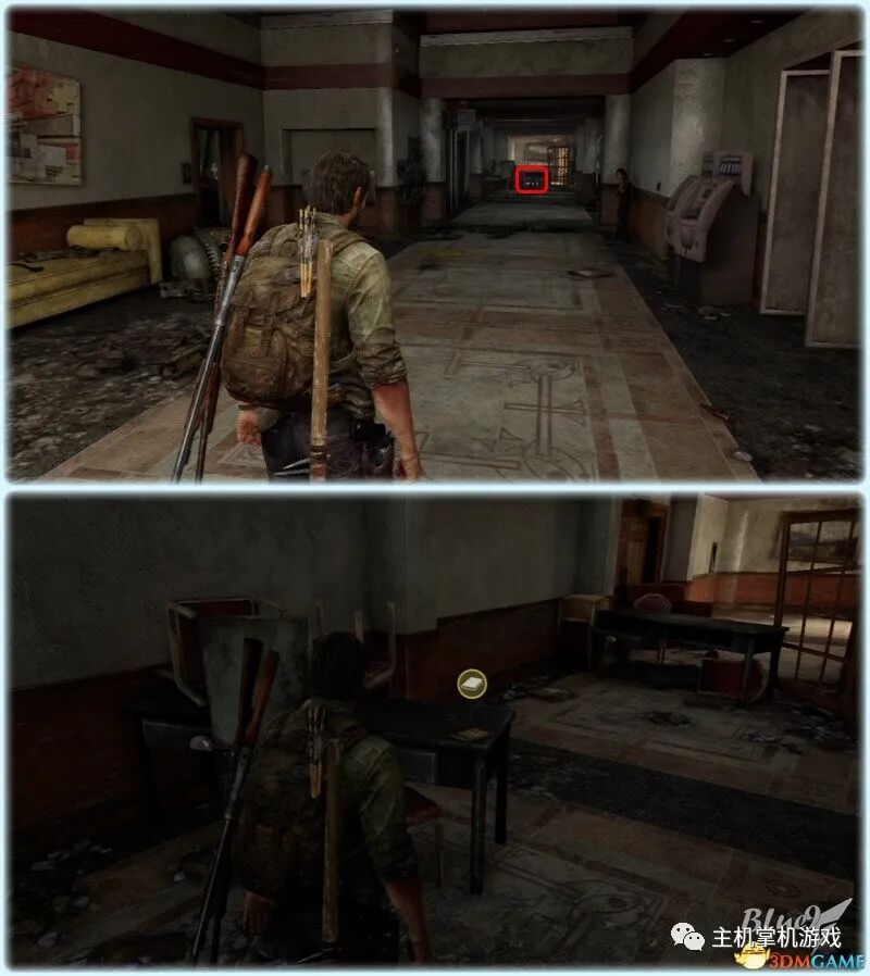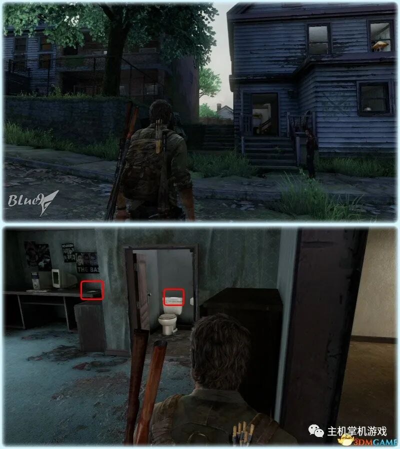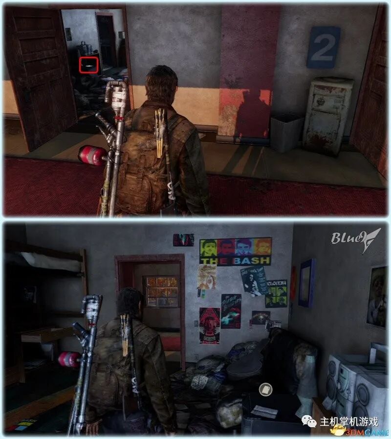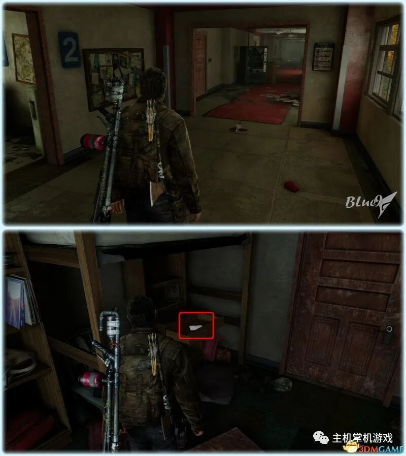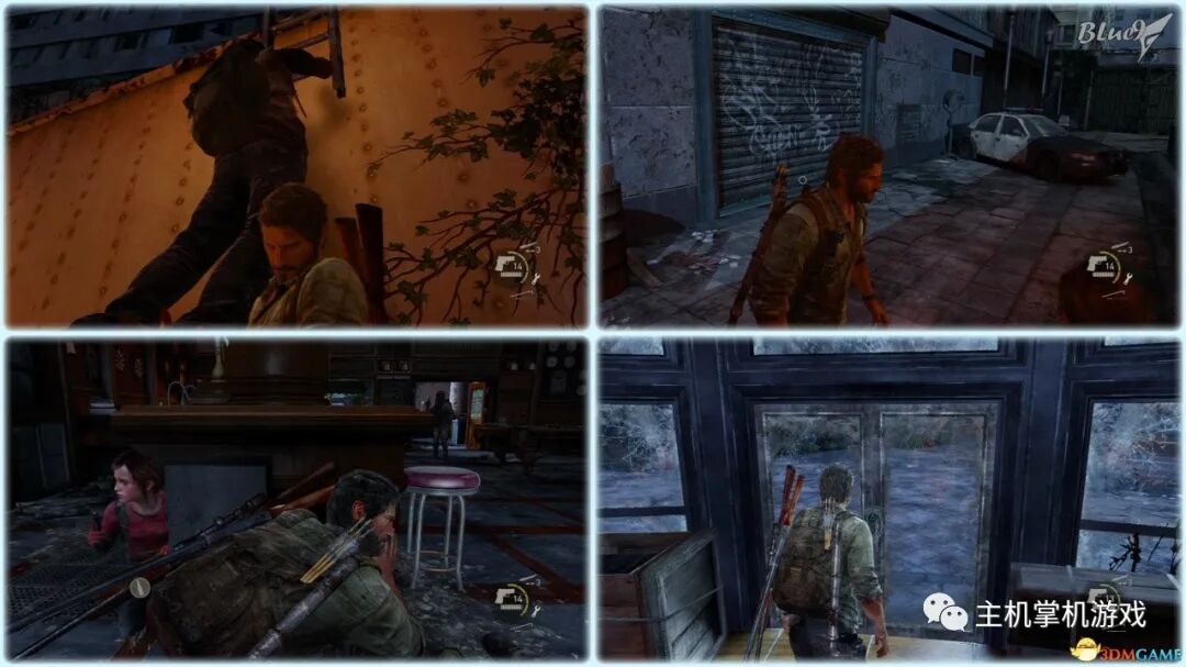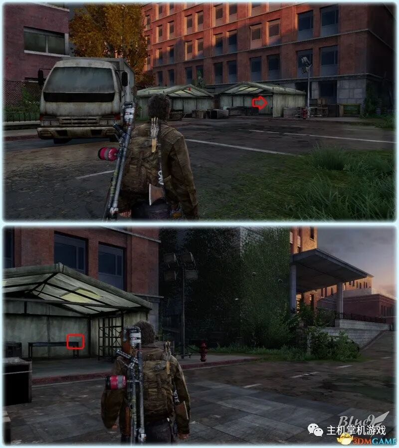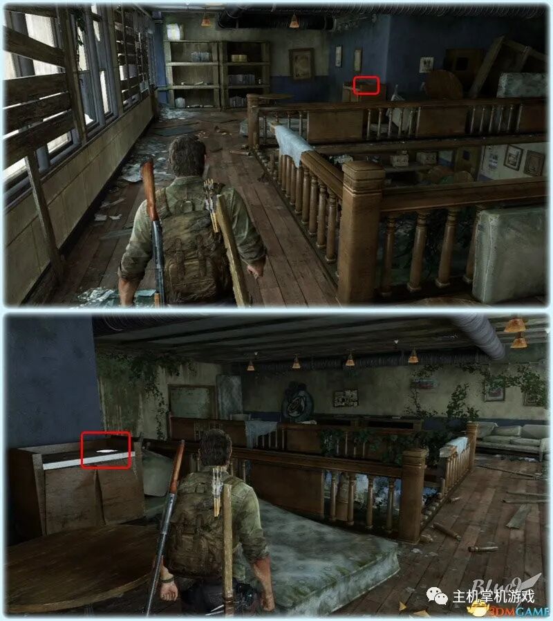Chapter 5 : Pittsburgh 匹兹堡(27收藏 4门 10对话 4笑话 工具箱) Alone and Forsaken 孤独和被遗弃 4遗留物 1火萤垂饰 2漫画 3门 4对话 3笑话 工具箱 这一战可以躲在狭窄区等待敌人送上门来,消灭一波后还有一波 漫画1 Force Carrier 力媒体 剧情取得对话13 打开百叶门进入后,可以和艾莉对话 工具箱2 接上,在百叶门旁的置物架上 遗留物30 Tourist Manifest 外地人货单 接上,在另一边靠墙的桌子上 训练手册2 2楼满是床铺的房间内,置物架底层 遗留物31 Ambush Map 走廊尽头的房间,进门后转身,门边的墙上 开门到"后花园",之后上楼梯再跳下去到高架桥下的路上 漫画2 Termination Shock 终结电击 高架桥下的路上的巴士内,在尾部地上 对话14 接上,继续走巴士前的一辆白车边,艾莉会短暂停留,可以和她对话 再往前走会出现几个敌人,可以跟在他们后边一一干掉 笑话1 干掉3个敌人后,在巴士边的红车旁,艾莉提示前进后会讲笑话 对话15 接上,从巴士跳下到下一区域后,艾莉会面对墙上的涂鸦,可以和她对话 遗留物32 Lost Hill Note 山区失守留言 接上,就在棚子下的柜子里 遗留物33 Traitors Flyer 叛徒传单 接上,进入下个区域后转身就在墙上(注意本区有敌人) 接上,先不管外边的敌人,进入书店,然后趁3名敌人对话时到办公室里干掉落单的敌人,然后回头干掉开始巡逻的3个敌人;到书店2层干掉敌人后回到外边干掉剩余的敌人 笑话2 接上,书店2层,消灭敌人后,艾莉调查一圈后开始轻松时间 火萤垂饰11 Kazden Risk 书店外和另一个建筑中间的过道尽头的地上 遗留物34 Abandon Zone Note 弃守区留言 书店办公室小屋的桌子上 遗留物35 Applicant Checklist 申请者清单 书店1楼楼梯下的桌子上 门5 接上,书店服务台右侧的门 遗留物36 Lost Areas Map 失守区地图 接上,弹簧刀门打开后,就在里边的置物架上 从窗户或者楼梯都可以出来,然后跳下去前进,来到被水淹没的地区 对话16 到达被水淹没的街道,往回走,有一个橱窗美女海报,艾莉发现后可以和她对话 笑话3 接上,艾莉调查一圈后对话开始轻松时刻 门6 接上,黄色出租车大概对着的一个打着红叉的门 遗留物37 Mother's Letter 母亲的信 接上,门内的沙发上 从货车车厢可以进入咖啡厅 遗留物38 Stash Note 储备笔记 从货车车厢钻进咖啡厅后,游进被淹没的门,上楼,在对面尽头的桌台上 这里的顺序可以和上边调换,出来回到街上继续往前游找到木板把艾莉送到对面,艾莉会放下木板,然后回到咖啡厅就可以走过木板到达对面的饭店。 Hotel Lobby 饭店大厅 2遗留物 1火萤垂饰 2训练手册 1漫画 3对话 1笑话 对话17 进入酒店后角落里有个咖啡机,调查 把梯子搬到图2位置爬上去继续前进,图1位置有些道具,可以先把梯子搬到这里,拿完道具再搬过去 遗留物39 Note to Staff 给工作人员的留言 用梯子爬到大厅上层后沿着边缘走到大厅上层另一侧,就在地上,拿到后可开启下层的保险箱 训练手册3 接上,就在下层的保险箱里 笑话4 接上,搜刮完保险箱后回到艾莉处,轻松一下 上楼后从窗户跳出穿过去,对面的房间有不少敌人,可以熟悉路线一一绞杀掉,然后上楼消灭剩余的敌人,二楼的敌人多在走廊里,路线更容易掌握,但是巡逻的路线更长,注意抓住机会 对话18 饭店3层墙上有个大洞的卫生间内的浴池(有2个尸体,注意这里是战斗区域),可以和艾莉对话 扒开电梯门,爬上梯子,然后沿着墙边过去跳到另一部电梯顶上,之后送艾莉上去,可惜之后乔尔掉了下去和艾莉暂时分离 图1这里是正路,其它地区可以探索一下;图2-3这里要潜水进入楼梯下层的门到另一区域,留足氧气一口气过去;图4这里还需要从水下绕过一个大铁网门 先找到发电机,要发动它,但是背后不断会出现感染者,最好再图2位置放1-2个炸弹,这样可以先放心发动发电机把灯先点亮(还有其它作用)... 遗留物40 Hotel Keycard 饭店钥匙卡 一个闪着电光的办公室的桌子上 用刚得到的钥匙卡打开门,图2这里有个房间可以改造武器 厨房再次遇到敌人,消灭后搬起水坑旁的梯子爬上去 漫画3 Accretion 增生 和艾莉汇合后,爬上梯子,艾莉会坐在一个桌子上赌气,向艾莉面对的方向先进来到一个吧台休息区,在左手边缘的桌子上 火萤垂饰12 Colby Reed 从断楼梯跳下楼后左边厕所最外侧一格的地上 训练手册4 接上,下楼后一直走,在中间的一个小桌上 对话19 接上,走到尽头进入一个大厅,一个拍照背景前可以和艾莉对话,需要连续对话3次 图1把钢琴推到墙下然后爬到上层;图2走廊另一头有些道具可以拿;图3这里往外跳进入金融区 Financial District 金融区 4遗留物 1门 4对话 这里的战斗一开始进入右边的店铺,然后上2楼,之后从外部到临近的店铺中,然后后部的房车绕到场地另一边完成暗杀 对话20 战斗完结后,走到一棵挂着尸体的树下,可以和艾莉对话 遗留物41 Fireflies Note 火萤留言 快餐店的库房地上 开启铁门,进入后把推车拉到墙下爬到另一端,这里有武器改造台 遗留物42 Final Attack Note 最后攻击留言 干掉2个猎人后进入一个办公室,靠破窗办公桌的地上 一开始先从图1处上到2楼料理掉里边的敌人,如果惊动敌人了最好在楼梯和过道处放个炸弹,剩下的敌人就可以慢慢料理了。注意本区域有很多类似比尔设置的陷阱 遗留物43 Mob Attack Note 暴徒攻击笔记 破墙建筑的二楼,老板桌下的地上 对话21(不计) 防火梯前墙上的涂鸦处,可以和艾莉对话 遗留物44 Truck Note 卡车留言 角落小店的桌子上 门7 接上