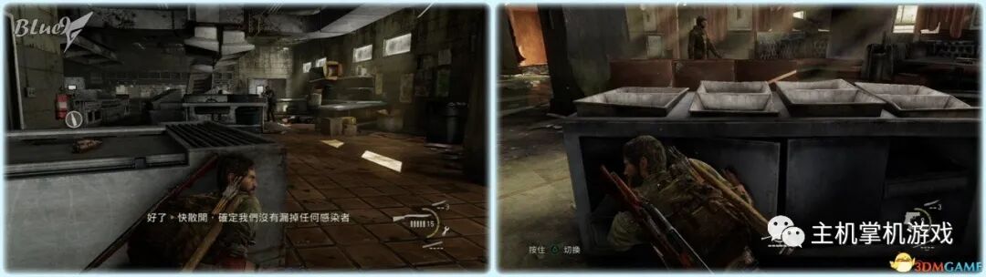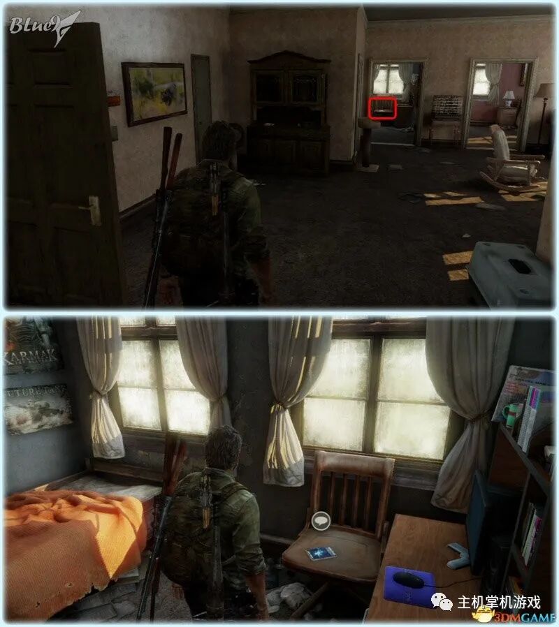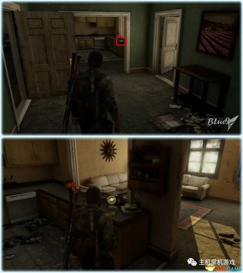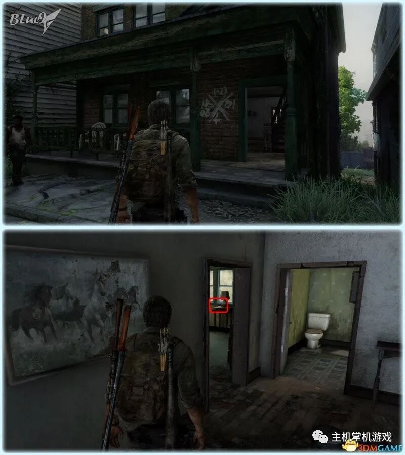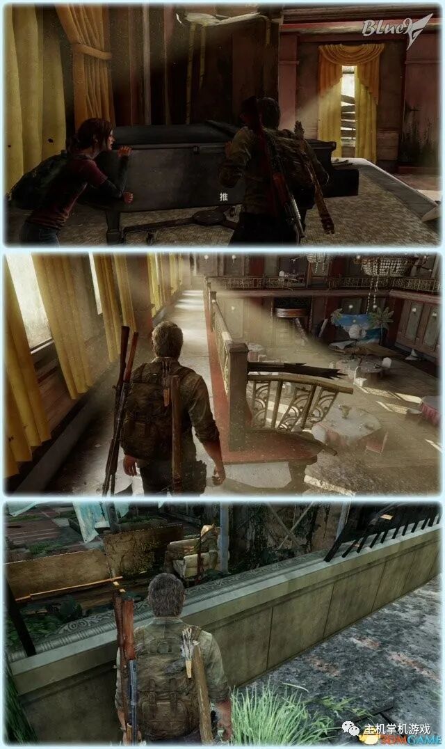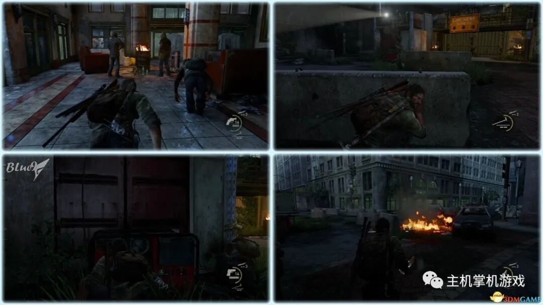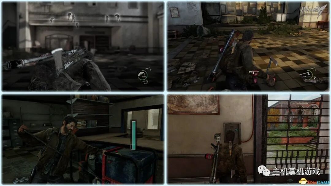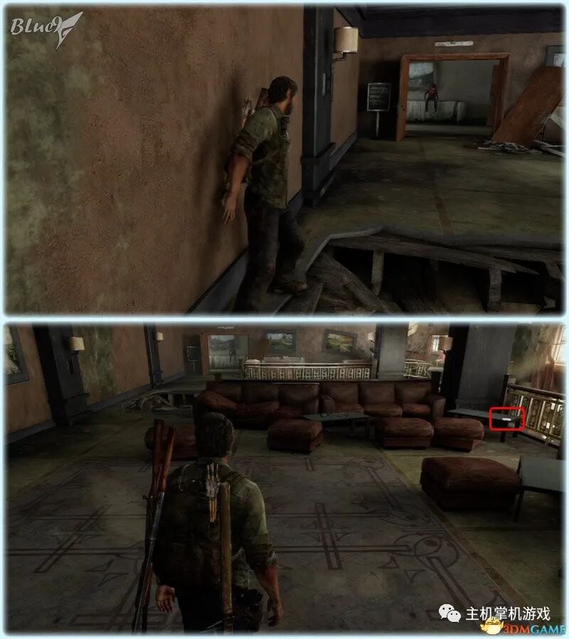 Chapter 5 : Pittsburgh 匹兹堡(27收藏 4门 10对话 4笑话 工具箱) Alone and Forsaken 孤独和被遗弃 4遗留物 1火萤垂饰 2漫画 3门 4对话 3笑话 工具箱 这一战可以躲在狭窄区等待敌人送上门来,消灭一波后还有一波 漫画1 Force Carrier 力媒体 剧情取得对话13 打开百叶门进入后,可以和艾莉对话 工具箱2 接上,在百叶门旁的置物架上 遗留物30 Tourist Manifest 外地人货单 接上,在另一边靠墙的桌子上 训练手册2 2楼满是床铺的房间内,置物架底层 遗留物31 Ambush Map 走廊尽头的房间,进门后转身,门边的墙上 开门到"后花园",之后上楼梯再跳下去到高架桥下的路上 漫画2 Termination Shock 终结电击 高架桥下的路上的巴士内,在尾部地上 对话14 接上,继续走巴士前的一辆白车边,艾莉会短暂停留,可以和她对话 再往前走会出现几个敌人,可以跟在他们后边一一干掉 笑话1 干掉3个敌人后,在巴士边的红车旁,艾莉提示前进后会讲笑话 对话15 接上,从巴士跳下到下一区域后,艾莉会面对墙上的涂鸦,可以和她对话 遗留物32 Lost Hill Note 山区失守留言 接上,就在棚子下的柜子里 遗留物33 Traitors Flyer 叛徒传单 接上,进入下个区域后转身就在墙上(注意本区有敌人) 接上,先不管外边的敌人,进入书店,然后趁3名敌人对话时到办公室里干掉落单的敌人,然后回头干掉开始巡逻的3个敌人;到书店2层干掉敌人后回到外边干掉剩余的敌人 笑话2 接上,书店2层,消灭敌人后,艾莉调查一圈后开始轻松时间 火萤垂饰11 Kazden Risk 书店外和另一个建筑中间的过道尽头的地上 遗留物34 Abandon Zone Note 弃守区留言 书店办公室小屋的桌子上 遗留物35 Applicant Checklist 申请者清单 书店1楼楼梯下的桌子上 门5 接上,书店服务台右侧的门 遗留物36 Lost Areas Map 失守区地图 接上,弹簧刀门打开后,就在里边的置物架上 从窗户或者楼梯都可以出来,然后跳下去前进,来到被水淹没的地区 对话16 到达被水淹没的街道,往回走,有一个橱窗美女海报,艾莉发现后可以和她对话 笑话3 接上,艾莉调查一圈后对话开始轻松时刻 门6 接上,黄色出租车大概对着的一个打着红叉的门 遗留物37 Mother's Letter 母亲的信 接上,门内的沙发上 从货车车厢可以进入咖啡厅 遗留物38 Stash Note 储备笔记 从货车车厢钻进咖啡厅后,游进被淹没的门,上楼,在对面尽头的桌台上 这里的顺序可以和上边调换,出来回到街上继续往前游找到木板把艾莉送到对面,艾莉会放下木板,然后回到咖啡厅就可以走过木板到达对面的饭店。 Hotel Lobby 饭店大厅 2遗留物 1火萤垂饰 2训练手册 1漫画 3对话 1笑话 对话17 进入酒店后角落里有个咖啡机,调查 把梯子搬到图2位置爬上去继续前进,图1位置有些道具,可以先把梯子搬到这里,拿完道具再搬过去 遗留物39 Note to Staff 给工作人员的留言 用梯子爬到大厅上层后沿着边缘走到大厅上层另一侧,就在地上,拿到后可开启下层的保险箱 训练手册3 接上,就在下层的保险箱里 笑话4 接上,搜刮完保险箱后回到艾莉处,轻松一下 上楼后从窗户跳出穿过去,对面的房间有不少敌人,可以熟悉路线一一绞杀掉,然后上楼消灭剩余的敌人,二楼的敌人多在走廊里,路线更容易掌握,但是巡逻的路线更长,注意抓住机会 对话18 饭店3层墙上有个大洞的卫生间内的浴池(有2个尸体,注意这里是战斗区域),可以和艾莉对话 扒开电梯门,爬上梯子,然后沿着墙边过去跳到另一部电梯顶上,之后送艾莉上去,可惜之后乔尔掉了下去和艾莉暂时分离 图1这里是正路,其它地区可以探索一下;图2-3这里要潜水进入楼梯下层的门到另一区域,留足氧气一口气过去;图4这里还需要从水下绕过一个大铁网门 先找到发电机,要发动它,但是背后不断会出现感染者,最好再图2位置放1-2个炸弹,这样可以先放心发动发电机把灯先点亮(还有其它作用)... 遗留物40 Hotel Keycard 饭店钥匙卡 一个闪着电光的办公室的桌子上 用刚得到的钥匙卡打开门,图2这里有个房间可以改造武器 厨房再次遇到敌人,消灭后搬起水坑旁的梯子爬上去 漫画3 Accretion 增生 和艾莉汇合后,爬上梯子,艾莉会坐在一个桌子上赌气,向艾莉面对的方向先进来到一个吧台休息区,在左手边缘的桌子上 火萤垂饰12 Colby Reed 从断楼梯跳下楼后左边厕所最外侧一格的地上 训练手册4 接上,下楼后一直走,在中间的一个小桌上 对话19 接上,走到尽头进入一个大厅,一个拍照背景前可以和艾莉对话,需要连续对话3次 图1把钢琴推到墙下然后爬到上层;图2走廊另一头有些道具可以拿;图3这里往外跳进入金融区 Financial District 金融区 4遗留物 1门 4对话 这里的战斗一开始进入右边的店铺,然后上2楼,之后从外部到临近的店铺中,然后后部的房车绕到场地另一边完成暗杀 对话20 战斗完结后,走到一棵挂着尸体的树下,可以和艾莉对话 遗留物41 Fireflies Note 火萤留言 快餐店的库房地上 开启铁门,进入后把推车拉到墙下爬到另一端,这里有武器改造台 遗留物42 Final Attack Note 最后攻击留言 干掉2个猎人后进入一个办公室,靠破窗办公桌的地上 一开始先从图1处上到2楼料理掉里边的敌人,如果惊动敌人了最好在楼梯和过道处放个炸弹,剩下的敌人就可以慢慢料理了。注意本区域有很多类似比尔设置的陷阱 遗留物43 Mob Attack Note 暴徒攻击笔记 破墙建筑的二楼,老板桌下的地上 对话21(不计) 防火梯前墙上的涂鸦处,可以和艾莉对话 遗留物44 Truck Note 卡车留言 角落小店的桌子上 门7 接上