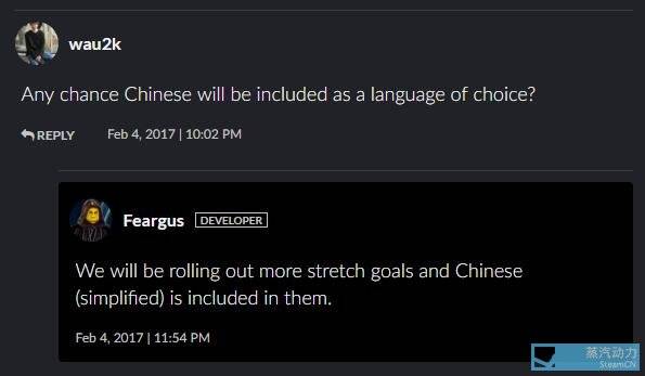 关于游戏是否有汉化的问题,开发方表示会在接下的众筹目标中加入。(众筹分阶段,筹的钱越多,游戏内容越多)