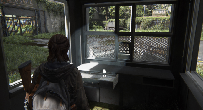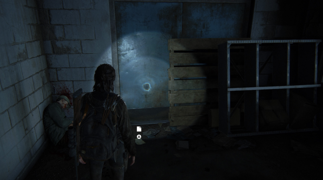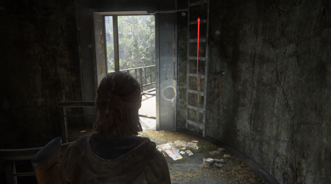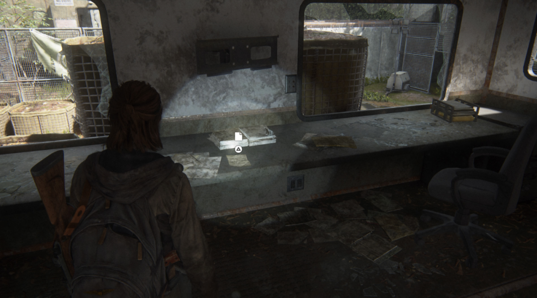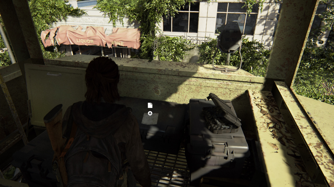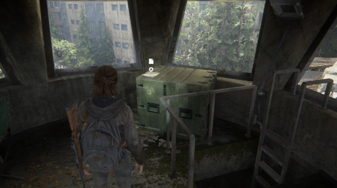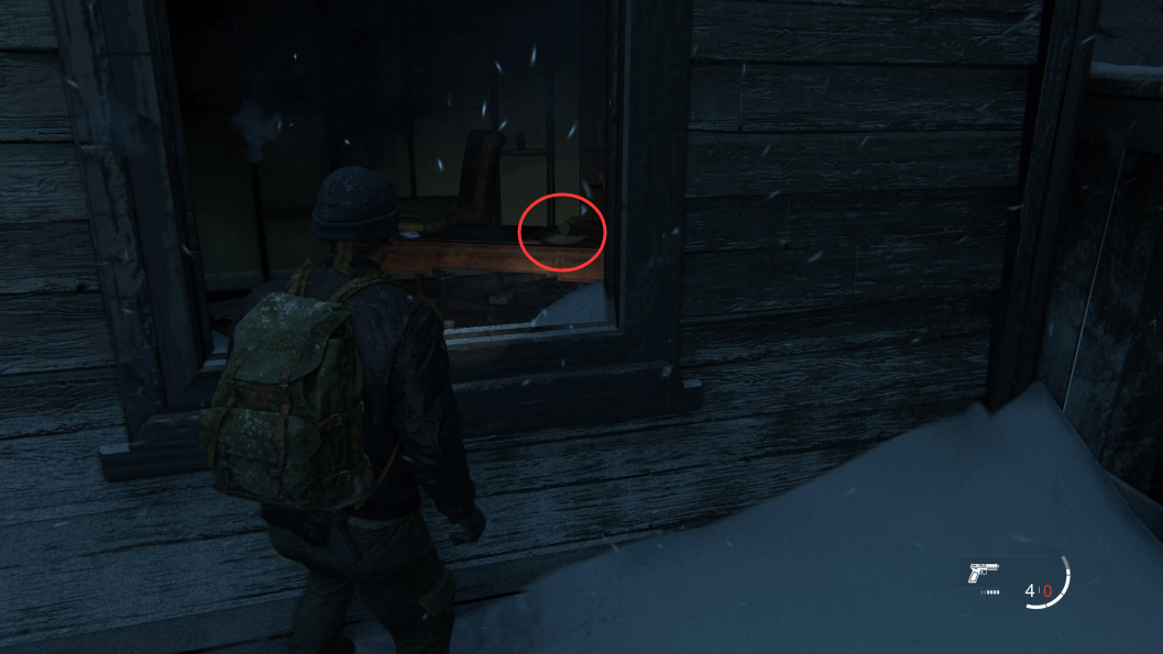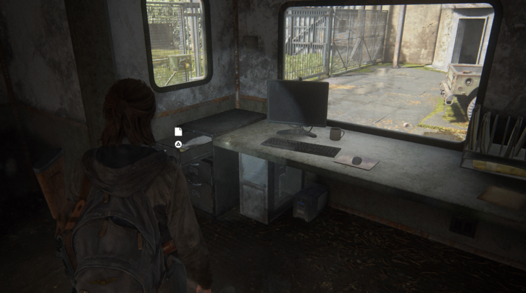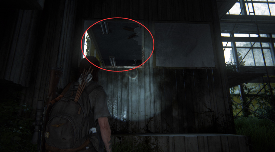25.收集品:伊萨克的命令 上一个收藏卡右边的箱子上。 26.收集品:哨站大门密码 从梯子上下来之后,砸开玻璃进入控制室,桌子边的抽屉里。 非常隐蔽,启动发电机后先别急着走,站在图下位置,向屋子对面扔电线,然后走过门从另一侧爬到屋顶,这里有一张收藏卡和一个收集品。