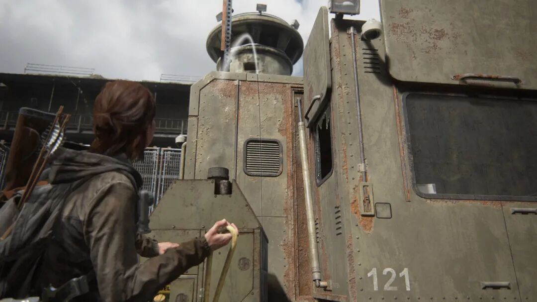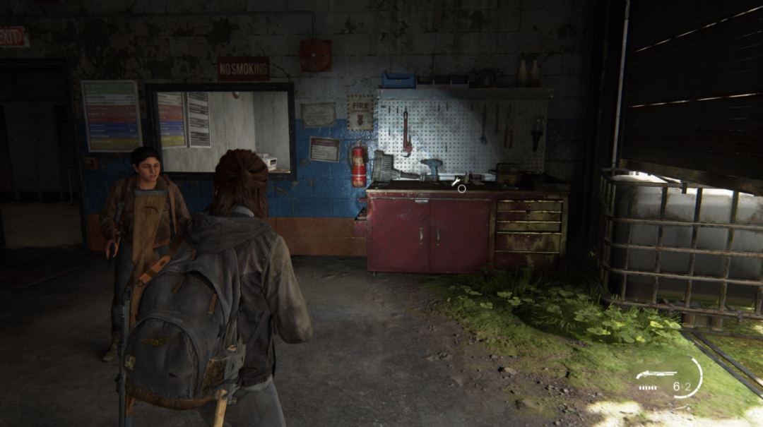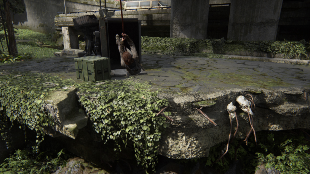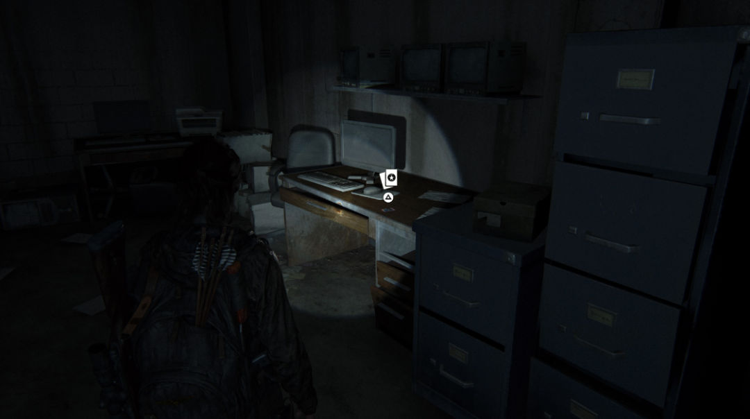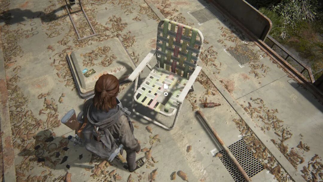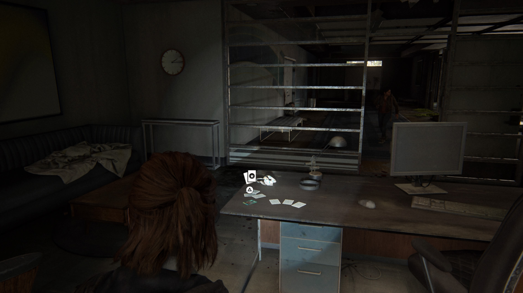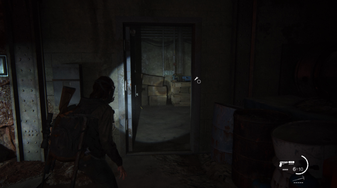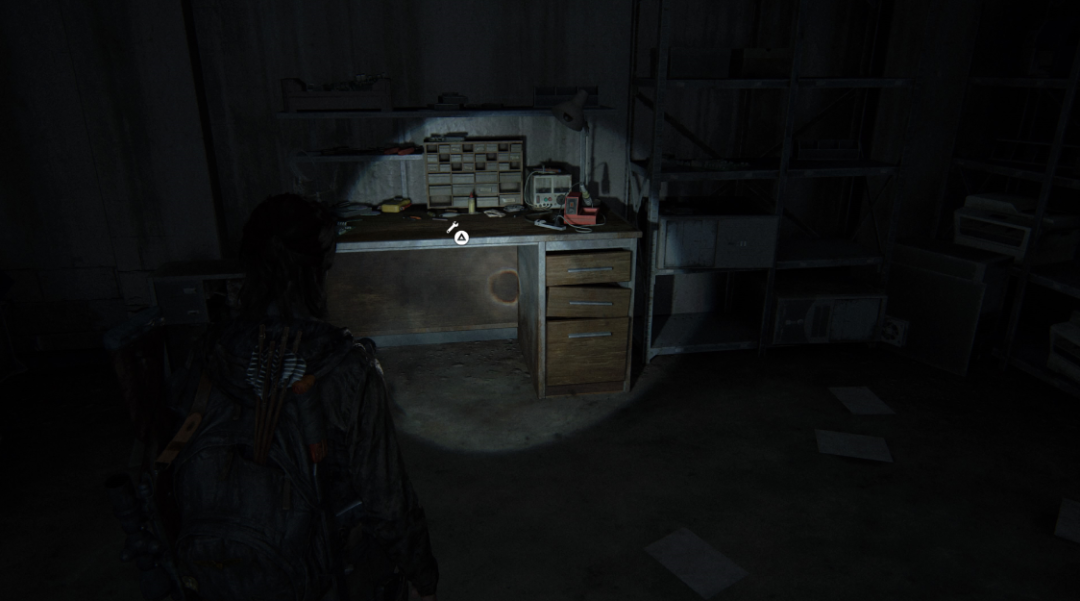 25.收集品:伊萨克的命令 上一个收藏卡右边的箱子上。 26.收集品:哨站大门密码 从梯子上下来之后,砸开玻璃进入控制室,桌子边的抽屉里。 非常隐蔽,启动发电机后先别急着走,站在图下位置,向屋子对面扔电线,然后走过门从另一侧爬到屋顶,这里有一张收藏卡和一个收集品。