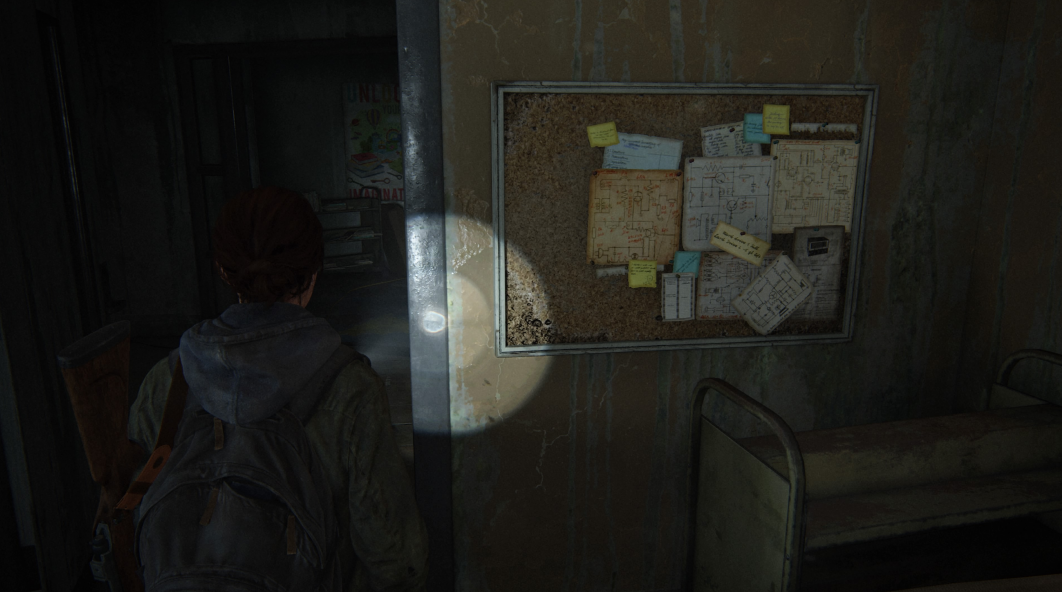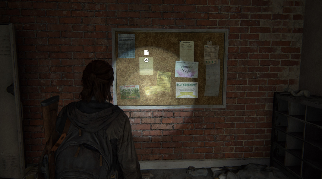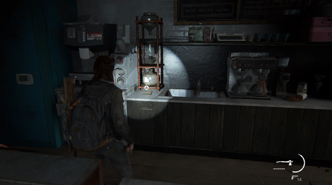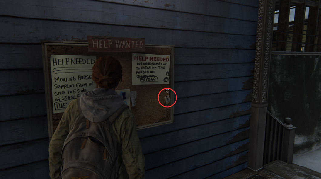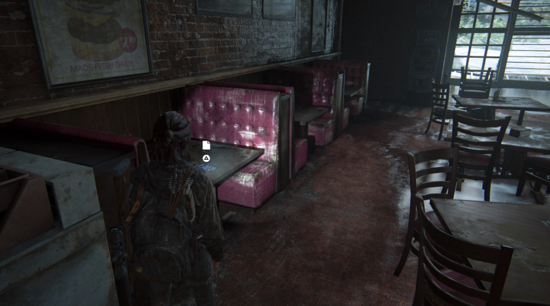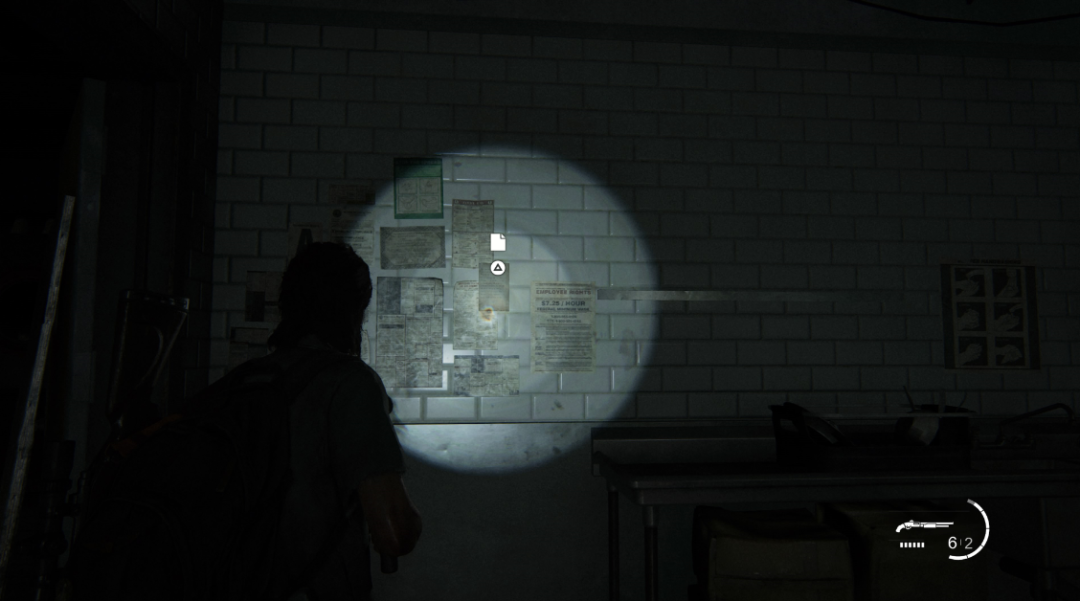 注意: 1.开启【辅助功能】→【导航辅助】和【强化聆听模式】(扫描范围和扫描时间都调到最大),之后在聆听模式下(按下R1)可以按圆圈进行周边的搜集物扫描,配合本攻略效果更佳。 2.目前的1.01版本中,如果使用简体中文文本,在章节选择处会显示不出当前的收集进度,而其他文本则不会出现这种情况,所以建议要做收集的朋友提前将文本改成繁体中文。 3.本攻略不包含合成素材以及胶囊/零件的位置(胶囊/零件可以多周目累计获得)。 4.因为一些协议,我们只能陆续放出全收集攻略,目前到「西雅图第3天-艾莉」,明天更新剩下攻略内容。 【杰克逊】 本章收集要素:收集品9 收藏卡4 日志记录4 工作台1 保险箱1 序章 无收集要素 清醒 收集要素:收集品1 收藏卡2 1.收藏卡:巨力米卡拉 跟着杰西推开一个木门来到BBQ餐厅前面,左边走廊的墙上的告示板上面。