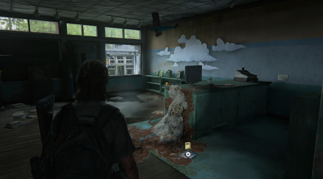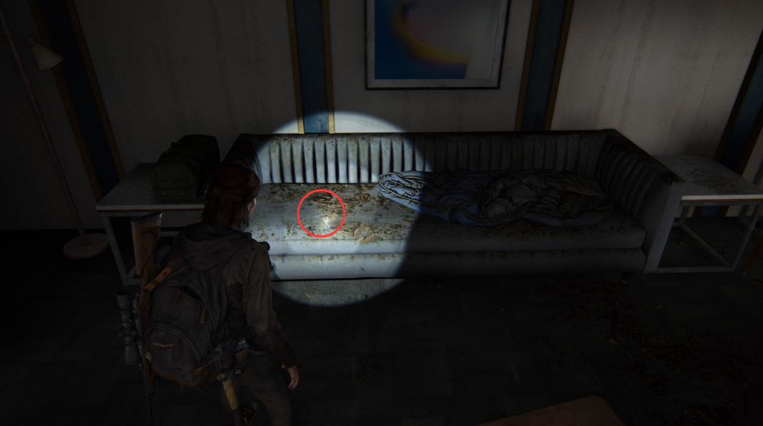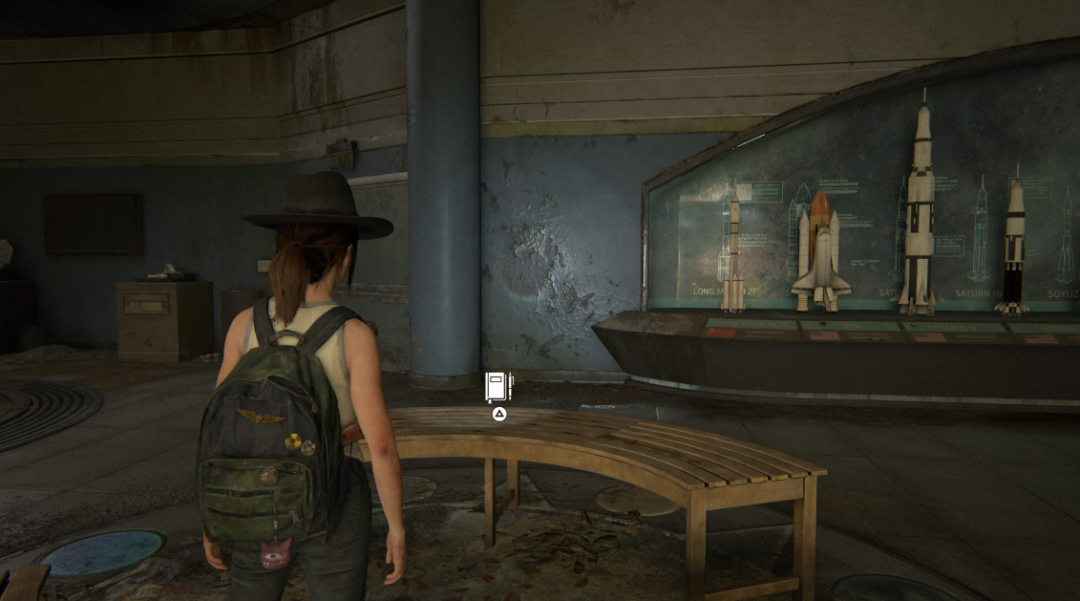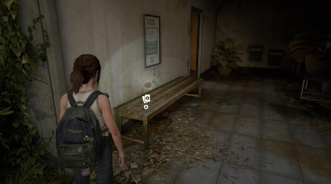 102.收藏卡:夜鹰 大展厅右侧前往卫生间的通道,左边的长椅上。 103.日志记录:宇宙飞船 来到太空展馆后,先依次从右往左调查火箭模型,触发完全部对话之后来到旁边的木椅子中间,就会出现一个调查选项。 104.收藏卡:萨乌拉 继续推进剧情,艾莉独自进入自然历史馆之后,来到中间的展厅,在右侧的椅子下面。 105.收集品:自杀留言 掏出枪之后,来到一个昆虫展馆,在右上角小洞前面一个骷髅的脚边捡到。