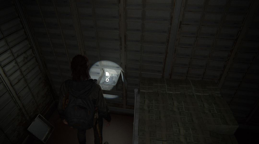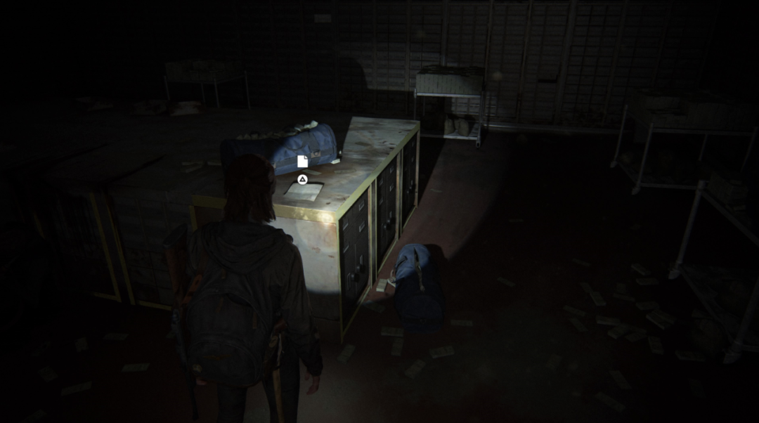 34.武器:霰弹枪 打开铁门后,面前的尸体手中。 35.收集品:银行抢劫犯的信 上面武器旁边的桌子上。 36.收集品:古董戒指 上面收集品的同一空间,在这个金库右侧的抽屉里。对应奖杯【伟大始于微末】。