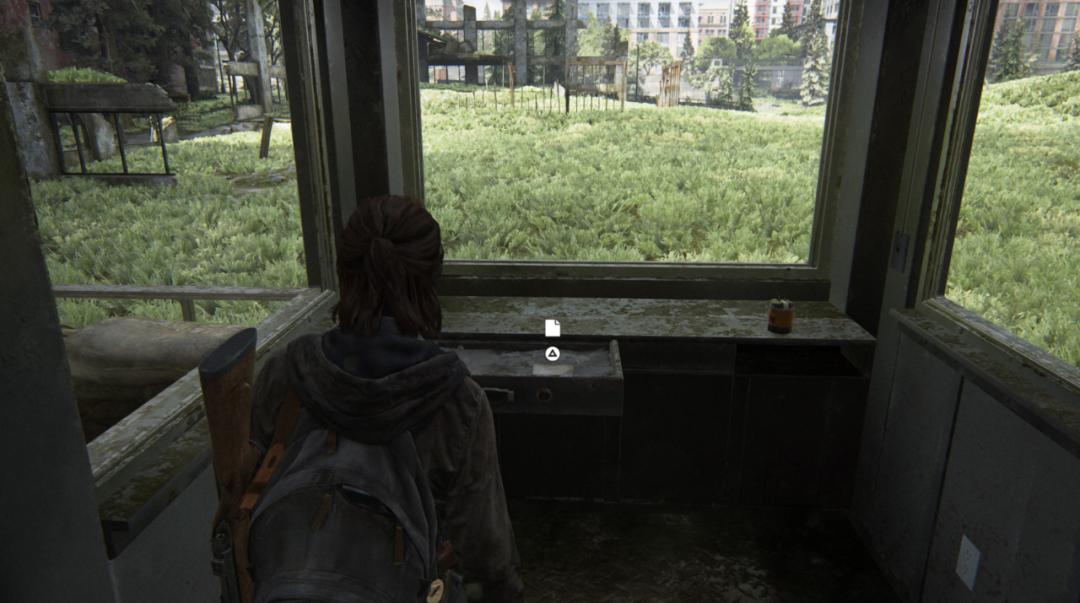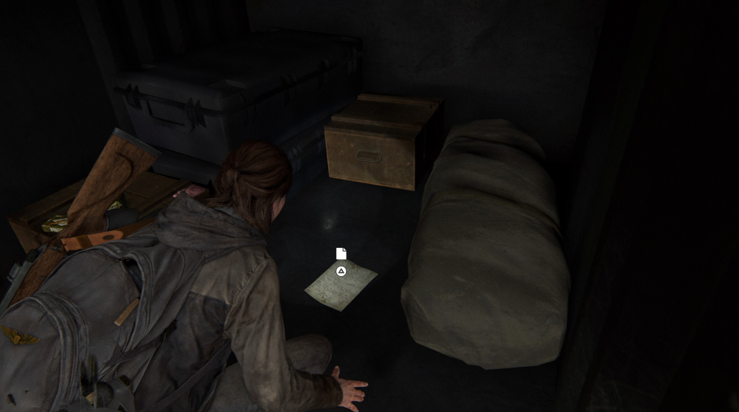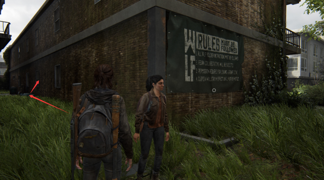 22.收集品:难民留言 正对铁门左手边第一个建筑,从窗户跳进去后在桌子上。
