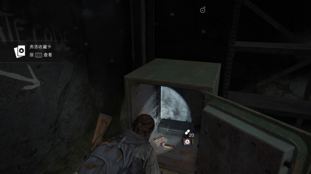 9.收集品:好狗狗密码 进入充满孢子房间后,在必经之路正前方有一个开着门的房间,桌子上(是旁边保险箱的密码提示)。 10.保险箱1 上面收集品左边,密码:072013 11.收集品:尤金的火萤挂饰 流程必得。 12.日志记录:长颈鹿 上面收集品之后的房间,调查进门右手边墙上的长颈鹿玩偶。