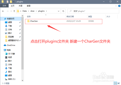 点击打plugins文件夹,新建一个【CharGen】文件夹,如图所示: