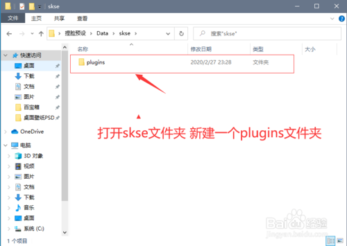 打开skse文件夹新建一个【plugins】文件夹,如图所示: