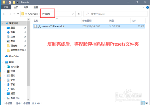 复制完成后,将捏脸存档粘贴到【Presets】文件夹,如图所示: