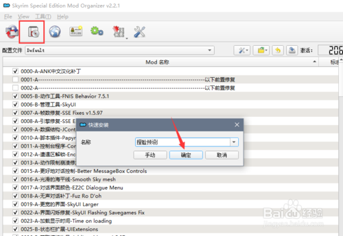压缩包添加完成后,打开Mod Organizer软件,加载【捏脸预设.rar】压缩包即可,如图所示:
