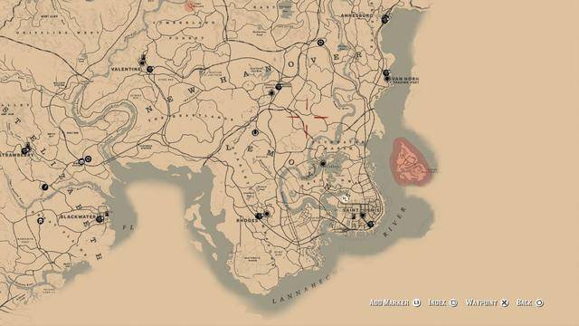 在地图的东南方,你会发现圣丹尼斯。这里游戏中最大的城市,什么都有。你将跟随剧情来到这儿,还能找到捕兽人,制作独一无二的装备。在圣丹尼的西边是河口的罗兹(Lemoyne) 地区。罗兹也许是地图上最独特的地方,如果你在进行“枪手任务”就会发现,这儿有很多鳄鱼,还是一些不法分子的老家。 附赠一张全地图供各位玩家参考。