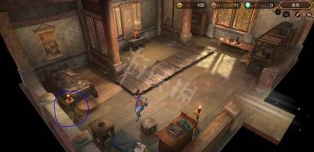 STEP2.在【寝房】中,点击下图蓝圈中的灯台,发现蜡底下有东西,正是小妤要找的爆竹。
