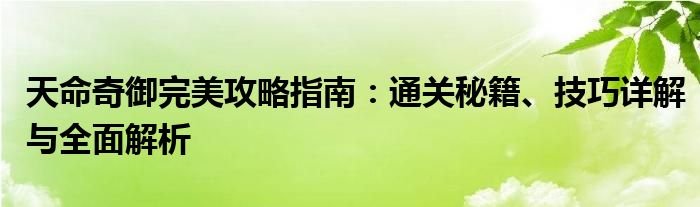 概述:本攻略以角色扮演游戏《天命奇御》为基础,为玩家提供全面的游戏指南,包括角色培养、任务攻略、战斗技巧等多个方面。本文旨在为玩家提供最详细的游戏指南,帮助他们在游戏中轻松获得胜利并解锁所有成就。