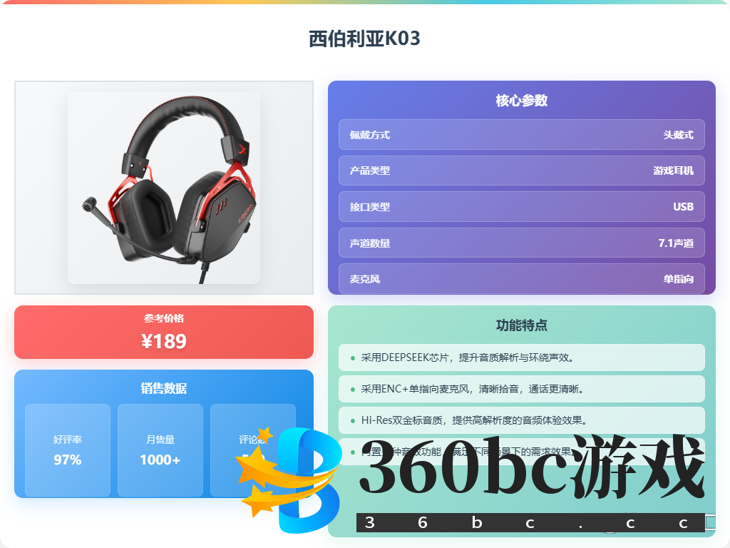 要说最近游戏圈里啥最火?那必须是那些能让你身临其境的头戴式游戏耳机!不少朋友都来问我,市面上品牌这么多,质量到底怎么样?哪些值得入手?毕竟,谁不想在游戏里听得更清楚,玩得更爽呢?正好,我最近也做了不少功课,今天就来跟大家聊聊“2025年头戴式游戏耳机推荐排行榜前十名:ROG、雷蛇、罗技等品牌”这个话题。 ![]() 这年头,游戏耳机可不只是听个响那么简单,音质、佩戴舒适度、麦克风效果,甚至颜值,都是我们考量的重点。尤其是对于发烧友来说,一款好的耳机,真的能让你在游戏中如虎添翼。那么,面对市面上琳琅满目的选择,哪些品牌型号才能真正脱颖而出呢?又有哪些值得我们关注的亮点呢?下面,就带大家一起看看我精心挑选的几款耳机,希望能帮助大家找到最适合自己的那一款! 热售款:ROG 棱镜2无线头戴式游戏耳机 这款ROG棱镜2游戏耳机,重量仅为318g,长时间佩戴无压力,这对游戏玩家来说很友好。它还配备了50mm镀钛振膜大尺寸发声单元,音质细节丰富,不管是游戏音效还是环境音,都能清晰呈现。 ![]() 这款耳机支持2.4 GHz无线、蓝牙和3.5mm有线三模连接,适配多种设备,像PC、手机、游戏机都能轻松连接。而且它搭载了SpeedNova无线技术,提供低延迟的稳定连接,这在游戏场景下很重要,能保证实时音频的流畅。 ![]() 更值得一提的是,它还支持7.1虚拟环绕音效,能精准定位声音来源,让你在游戏中更有沉浸感。加上高达110小时的续航,告别频繁充电的烦恼,可以尽情享受游戏啦! ![]() ¥60 ROG棱镜2 头戴式无线游戏耳机 三模连接 Speednova技术 轻量化 游戏电竞耳机环绕7.1音效 3.5mm暗夜黑 ¥1299 京东月销量1000好评率97%无理由退换京东配送 购买 热售款:雷柏VH850 雷柏VH850这款耳机,连接方式够丰富,蓝牙5.3、2.4GHz无线和3.5mm有线连接都支持,多种模式随便选。而且它还带物理双音腔结构,听声辨位更准,声音也更清晰,玩游戏的时候能更沉浸。 ![]() 再说说音质,这耳机用的是石墨烯材质复合膜50mm钕磁发声单元,解析度确实可以,功率也挺足。麦克风是全指向降噪的,360°都能调节,而且还是可拆卸设计,不用的时候就能卸下来,很方便。 ![]() 佩戴舒适度上,这款耳机用的是包耳式大耳罩,材质也挺柔软的。续航方面,内置1200mAh锂电池,能坚持46小时无线续航,RGB背光效果也挺炫酷。金属单头梁设计,无极伸缩调节,各种头型都能hold住。 ![]() 雷柏(Rapoo)VH850三模无线游戏耳机头戴式电竞三角洲FPS 明末渊虚之羽游戏专用听声辨位打瓦 多设备兼容 黑色 ¥229 京东月销量600好评率96%无理由退换京东配送 购买 热售款:樱桃HC2.2电竞耳机 樱桃HC2.2这款耳机,不得不说,全包耳设计加上宽大耳罩,舒适度确实提升了不少。可调节头梁搭配硅胶气垫,戴起来对头部的压迫感也小了很多。而且它还支持虚拟7.1声道环绕音效,玩FPS或者潜行类游戏,听声辨位啥的,确实给力! ![]() 这个耳机的麦克风设计也挺有意思的,是可拆卸的,而且还是高品质防噪HD麦克风,能有效降低环境噪音,开黑交流更清晰!线材是USB接口,长度也够用,还带麦克风静音键和音量调节键,用起来也挺方便的。 ![]() 再说说音质,它采用了50mm驱动单元,频响范围也够宽,不管是听歌还是游戏,高低音表现都还不错。另外,这个耳机还支持折叠收纳,携带挺方便的。是一款性价比还可以的游戏耳机。 ![]() CHERRY樱桃 HC2.2 游戏耳机带麦电竞耳麦虚拟7.1环绕声道 耳机头戴式 电竞耳机 黑色 适配三角洲行动 ¥179 京东月销量200好评率97%无理由退换京东配送 购买 热售款:赛睿(SteelSeries)寒冰新星 Arctis Nova1 赛睿这款耳机,轻量化设计确实用心,戴起来舒服多了,长时间游戏也不会觉得累。而且耳罩是海绵材质,透气性不错,夏天用应该也不会闷热。 ![]() 它这个AI降噪麦克风必须得夸一下,能有效减少环境噪音,语音通话清晰了不少,开黑交流再也不怕被杂音干扰了。自带的7.1环绕声也挺给力,听声辨位更准,游戏体验直接提升一个档次。 ![]() 3.5mm的接口,兼容性很棒,电脑、主机都能用,甚至手机也能插。ComfortMAX舒适设计,耳罩可旋转,头带也能调节,各种头型都能找到合适的角度。机身上还有便捷控制按钮,调节音量、静音麦克风都很方便。 ![]() 赛睿(SteelSeries)寒冰Nova1有线3.5mm游戏电竞头戴式耳机 AI降噪麦克风FPS7.1环绕声 LOL 吃鸡 CS 适配三角洲行动 ¥339 京东月销量200好评率94%无理由退换京东配送 购买 热售款:西伯利亚K03 西伯利亚K03游戏耳机音质清晰,听声辨位准!它通过Hi-Res金标认证,能重现音乐发烧友级别的听感,玩游戏时方位感更强,细节也更清晰。针对射击类游戏,枪声和脚步声都进行了强化,让你更好地掌握战场态势,简直是物理外挂! ![]() 这款耳机搭载了DEEPSEEK力荐的CM6646X1芯片,音频解码能力强悍,能提升音质解析和环绕声效。配合7.1声道环绕音效,空间感十足!它还内置了多种方便的功能,像魔幻变声、12种预设EQ,可玩性很高。 ![]() K03采用Airy D型腔体和55°骨轴贴合设计,佩戴起来真的舒服,隔音效果也好。而且它还配备了可调节麦克风和线控,语音通话清晰,操控也很方便。无论是玩游戏还是日常使用,都很适合! ![]() 西伯利亚(XIBERIA)K03有线USB金标7.1游戏耳机电竞耳麦头戴式吃鸡FPS耳机带线控电脑办公麦克风武士黑全网热销 ¥189 京东月销量2000好评率95%无理由退换京东配送 购买 热售款:雷蛇旋风黑鲨V3pro 雷蛇旋风黑鲨V3 Pro这款耳机,在连接方面真是