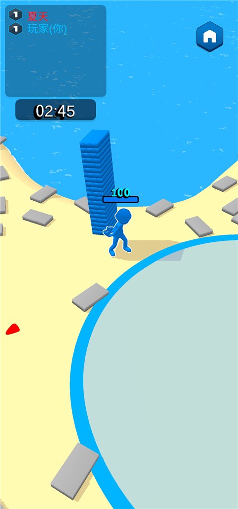 3、玩家需要捡起地上的方块建筑城堡,然后让自己的地盘原来越大。