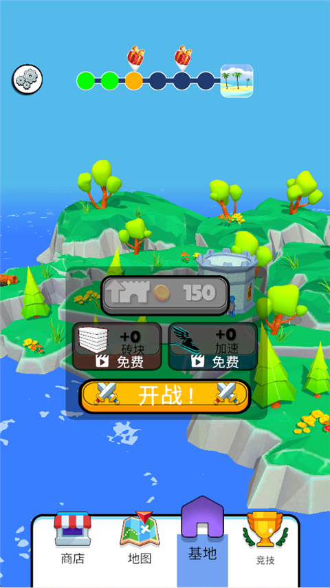 我去搬砖了是一款非常有趣的益智休闲游戏,融入了塔防、跑酷、模拟建筑等玩法。游戏中你将去拾取更多的砖块来进行搭建,在这里建造美丽的城堡,拥有更加安全的势力范围,和其他对手展开地盘争夺战。游戏画面简洁明快,操作简单易懂,同时还融入了多种任务和挑战,让玩家在轻松愉快的氛围中挑战自我,体验成就感。 1、首先打开我去搬砖了游戏,点击开战。