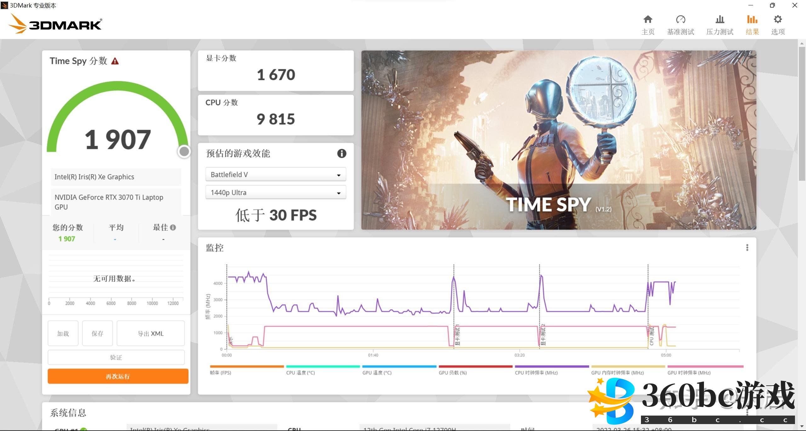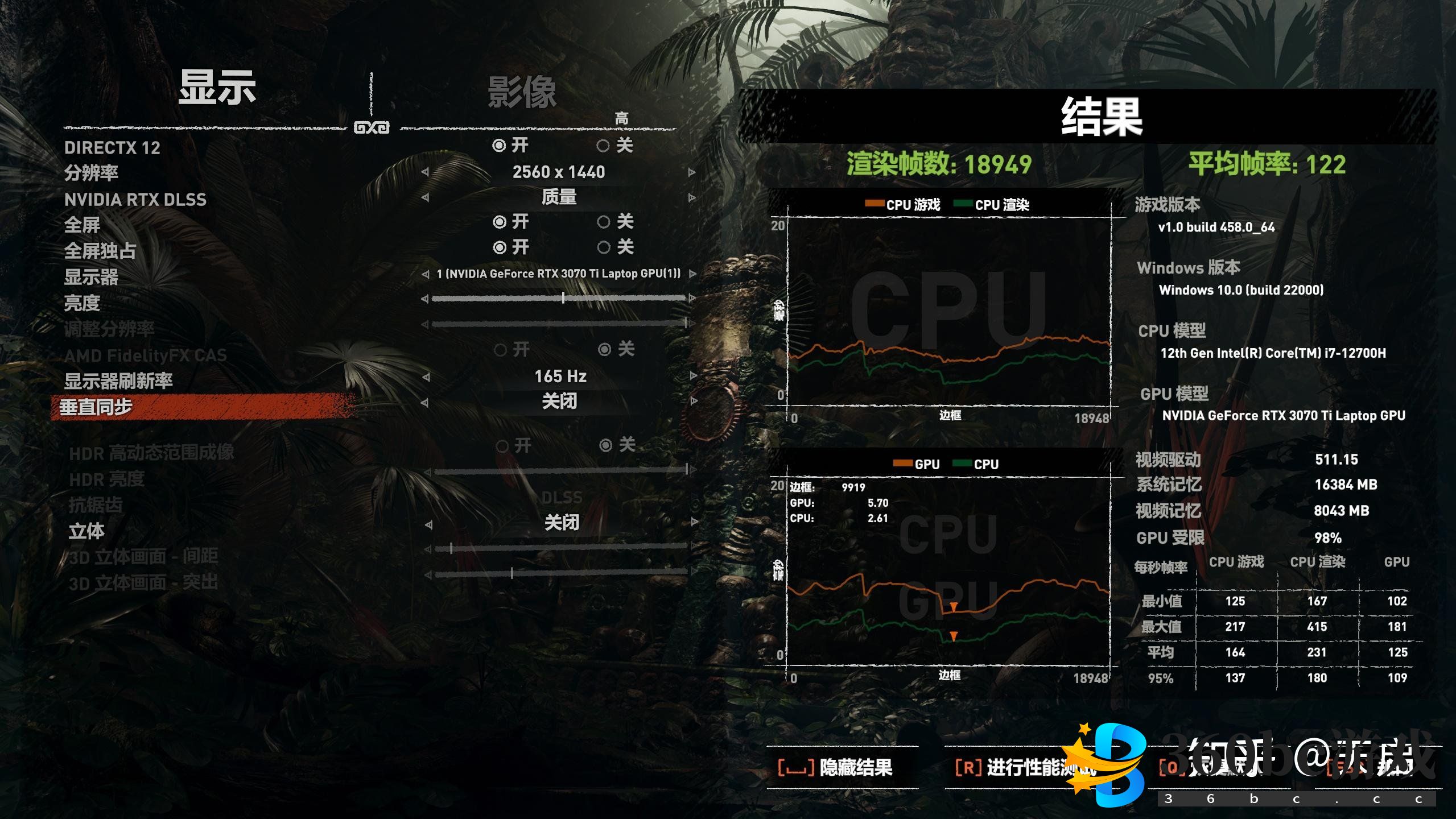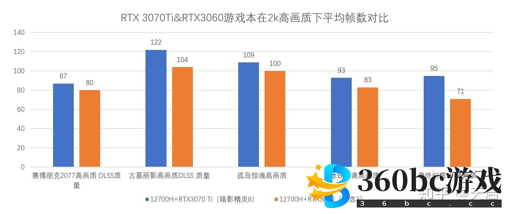 只能希望他们能尽早改进了... ![]() 不过惠普居然给主流价位的游戏本上了四区RGB背光,这点还是值得表扬的...并且背光的效果也很不错,基本没有出现断点问题。惠普在自带的控制软件“Omen Gaming Hub”种提供了相当多的预设灯光效果,有兴趣的玩家可以自己探索一番。 扬声器的表现就很一般了,没什么太大的亮点,和这个价位绝大多数的游戏本一样,听个响水平。 ![]() 机身左侧,暗影8布置了大量的接口,从左至右依次为DC in电源输入,rj45接口,一个USB3.2 Gen1速度的USB-A接口,一个mini DP(DP 1.4)接口,一个HDMI 2.1接口,一个支持100w PD输入的雷电4接口,一个3.5mm耳机接口和一个SD读卡器。 ![]() 机身右侧从左至右则依次为出风口和两个USB3.2 Gen1速度的USB-A接口。整机的接口数量和种类都很齐全,尤其是搭载了游戏本中很少见的SD读卡器,为用暗影精灵8从事创意设计任务的用户提供了一定的便利。 而在排布的位置上表现也不错,最常用的USB-A接口左右两侧都有,电源接口在左上防止与其他接口的线相互干涉,也考虑到了实际使用的场景,好评。 之前暗影精灵8 3060版上市的时候曾经因为供应短缺问题选择了FHD 144hz的屏幕曾经受到了一定的争议,不过我手上的高配就没有这个问题了,继续搭载了一块2k 165hz 100%sRGB的16.1吋大屏,兼顾了清晰度,流畅性与色域表现。 ![]() 用DisplayCAL软件搭配蓝蜘蛛X校色仪对屏幕进行测试,这块屏幕的实测最大亮度为328.3尼特,对比度1040.1:1,都超出了标称值。这块屏幕的基础素质作为今年次旗舰级游戏本的搭配,主要素质上是没有明显短板的。 ![]() 色域覆盖的表现也很不错,基本盖满了100%的sRGB色域,是一块很优秀的高色域电竞屏。而在色域容积方面则小幅超过了100%的sRGB。高色域的屏幕保证了我们日常看到的画面颜色能够显示完全,同时没有广色域屏幕的过饱和问题,兼顾了颜色的准确性与画面观感。 ![]() ![]() 校色后,因为屏幕本身的色域覆盖很不错,这块屏幕的色准表现可以用惊艳来形容。最大ΔE只有0.89,平均ΔE也只有0.37,表现非常棒,不仅可以用来玩游戏,用作创意设计工作也完全ok。 ![]() 色温偏移在20%以上亮度时几乎没有,表现较为一半,不过暗影精灵8 的整体色温在7000K左右,相比标准的6500K稍冷,对中国用户喜欢偏冷屏幕的显示有所照顾。 ![]() 另一个值得称赞的地方是暗影精灵8的校色前色准也好的离谱...对于一般用户来说,完全不需要再自行校色即可直接使用。 ![]() 我手里的这台暗影精灵搭载了第12代英特尔®酷睿™i7-12700H处理器,核心代号Alder Lake,采用了全新的Intel 7制程制造。得益于12代酷睿全新的P+E大小核设计,i7-12700H拥有14核心20线程的物理规格,是今年H45系列中的主流型号。 ![]() ![]() 首先是大家都很熟悉的CineBench R20/23测试,得益于暗影精灵8较为激进的性能释放和今年12代酷睿的强劲性能,R23多核成绩已经突破了17500分,比上一代的i7-11800H或者R7-5800H进步了50%左右,可以说是巨大管的牙膏了... ![]() 在考验性能释放稳定性的CBR15的30轮测试中,暗影精灵8的表现也还不错,前几次的分数较高,在2700+,后续逐渐下降到2560分左右并保持稳定。 ![]() 通过和暗影精灵7上搭载的上一代处理器的跑分对比我们可以看到,12代酷睿不管在单核还是多核性能上,都取得了长足的进步。 ![]() 而在具体应用的CPU测试中,我们选择了Blender的模型渲染作为参照基准。搭载12代酷睿i7-12700H的暗影精灵8仅用了144s即完成了渲染。 ![]() 和搭载上一代H45 i7-11800H以及AMD上一代的产品进行对比,可以看到大小核对于这种纯吃CPU的项目,提升还是很显著的。 ![]() 核显方面,今年的H45核显架构实际上和去年的完全一样,只不过规格从去年的32EU大幅提升到了80EU(i5)或96EU(i7),因此名字也从去年的UHD改成了与低压U一致的Iris Xe。 ![]() 实测性能表现确实也达到了应有水平,i7-12700H上核显1670的跑分已经很接近i5-11320H上的Intel核显,相比上一代i7-11800H更是有了跨越式进步。 ![]() ![]() 独显方面,RTX3070Ti的规格相比3070还是有一定进步的,同时降低了一定的核心频率,其次就是PPAB的功耗上限相比去年的RTX3070有所提升。 ![]() 但是暗影精灵7上的RTX3070Ti还是115w的,性能会受到一定影响。 ![]() ![]() 显卡的TS得分10244,FS得分26691,相比130w的3070几乎没有进步。好在RTX3070Ti的绝对性能确实不错,能够在2k分辨率下hold住绝大多数游戏的高画质,并且已经能够在兼顾画质的情况下打开光追功能了,详见后面的游戏测试。 ![]() 再次汇总一波,暗影精灵8上的RTX 3070Ti,相比自己低配上的RTX3060,进步幅度大约在20%,但是相比满血的3060,进步幅度就大约只有14%,并且相比115w的RTX3070,进步只有3%,可谓是蝇量升级了。但是暗影胜在便宜...10499的价格相比3060版,有20%的显卡性能提升,额外的512G硬盘空间与从FHD144hz升级到QHD165hz的屏幕,可谓是全方位提升了。 ![]() 内存方面,我手里的这台暗影精灵8搭载了16GB的DDR5内存,两个插槽插满组成双通道,由于初代的DDR5时序都比较高,且都是Gear2分频运行,导致延时比DDR4实际上是倒车的,在CSGO这种超高帧数游戏内可能会出现帧数瓶颈,这点就只能等新一代更高频率的D5内存了。不过暗影的这个内存表现相比我之前测过的天选3还是好一些的,不管是带宽还是延迟表现都更好一些。 ![]() 硬盘方面,本机使用了西数的SN810,是一款不错的OEM Pcie4.0固态硬盘。本机一共有两个固态硬盘位,且都支持Pcie 4.0的固态硬盘,这