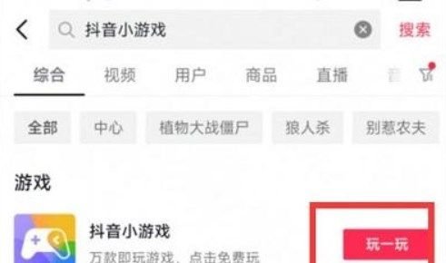 3、找到抖音小游戏之后,点击旁边的“玩一玩”。 4、之后就可以进入到抖音游戏的页面中。