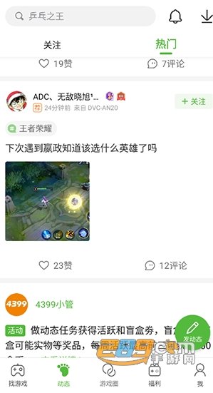 3、返回主界面,点击动态,在这里你可以看到更多大神的动态信息;