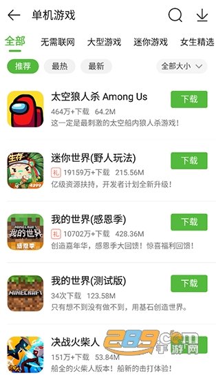 2、点击单机,选择你自己喜欢的,点击后方的下载即可下载手机上开始玩耍;