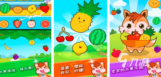 JoJo是超级可爱的小朋友,有喜欢JoJo的话在亲子乐园里面和JoJo做搭档。在超市里面要对物品进行认知,辨认所有商品并放置在货架上,要将这些物品进行分类。如果小朋友们感到困难,父母可帮孩子一起完成物品分类的任务。操作能力快速提升后,还能制作美味的小蛋糕!采集蛋糕食材,用奶油装裱蛋糕或者点缀新鲜水果,制作精致小蛋糕。 6、《宝宝水果乐园》