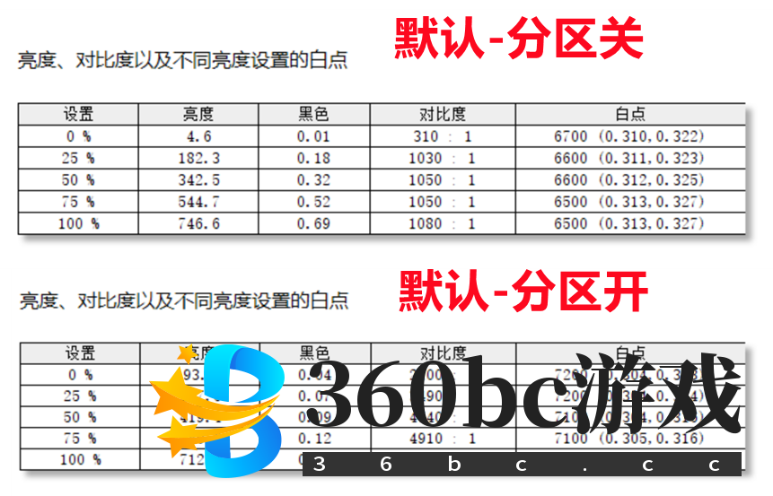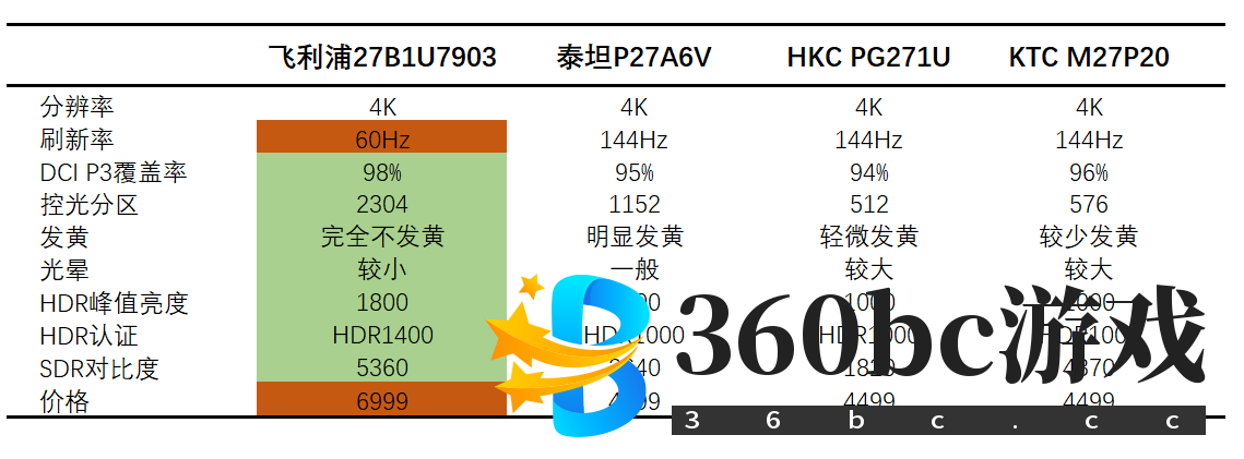 今年MiniLED背光大热,飞利浦也不甘示弱,而且一上来就推出了高配版本的MiniLED显示器,拥有量子点(QD)技术,2304个控光分区,支持HDR1400,带有双雷电4(90W)接口,面是友达M270QAN05(这块面板本身是四面窄边框)。 ![]() 售价6999元,型号叫做飞利浦27B1U7903,定位偏向于“专业绘图设计”。 尽管刷新率是60而非144Hz,但是飞利浦27B1U7903的配置远超市场面常见的512分区的MiniLED显示器。飞利浦27B1U7903拥有更高的色域,数倍的控光分区以及高达1800nit的HDR亮度,并且面板是友达XXXX,观感上远超其他4K MiniLED的友达2.3面板。因为堆料,飞利浦27B1U7903完全没有MiniLED显示器中常见的发黄问题,控光效果也更加精细。 ![]() 单看显示效果的话,堆料王飞利浦27B1U7903远超其他4K MiniLED显示器,即使是1152分区的泰坦军团P27A6V,也远不如飞利浦27B1U7903。如下图,(在亮度一样的情况下)飞利浦27B1U7903的色彩还原明显更好,颜色对比更强烈,画面也更优立体感,总体显示效果远超泰坦P27A6V。 ![]() 飞利浦27B1U7903的外观非常沉稳厚重,设计风格偏向于商务。 ![]() 支架非常稳重,偏向于复古风,底座很好看,极具辨识度。 ![]() 这里的“厚重”是字面意思上的。厚重是因为它的背光远超其他MiniLED显示器,其结构也更加复杂,所以需要更大的空间来容纳背光。 ![]() 接口异常强大,除了商务办公显示器中常见的USB-A扩展接口(4个)以外,还有两个雷电4(USB Type-C,90W)和一个网线口。雷电接口只在极少的顶级显示器中才能简单,比如9000元的明基PD2725U就有2个雷电3,8500元的LG27MD5KL有1个雷电3。 ![]() 在显示器上,雷电4接口和其他显示器的全功能USB Type-C接口相比,看起来区别并不是很大。满血USB Type-C的速率也能支持DP1.4协议,最多100W反向充电,也能实现“一线通”:单USB Type-C线同时完成视频信号传输、数据传输、充电、USB接口扩展。 雷电4的好处是,它在传输视频信号的时候,不会挤占数据传输通道。这意味着,雷电4在传输4K 60Hz 10bit视频数据的时候,USB-A扩展接口依然是满血的;而普通USB Type-C,视频信号挤占数据信号通道,导致传输4K 60Hz 10bit视频数据的时候USB-A速度会降低到USB 2.0的水平,这个速率用来插鼠标键盘是足够的,但是面对大容量数据传输需求时是不捉襟见肘的。如果是你一名专业设计师,你无法用一台没有雷电4接口显示器一边设计一边大批量传输视频/图片。 虽然接口很给力,但是飞利浦27B1U7903的OSD按键非常非常非常反人类!躲在屏幕背面的OSD按键不仅仅很难按到,按压力度设计得还极为不合理,按起来非常不舒服,而且极度容易误触。每按一次我都要和小伙伴们吐槽一次。这是这款显示器在设计上的最大败笔!我们无法相信,2022年的显示器竟然会采用如此反人类的设置。 ![]() PWM调光。频率239Hz,属于低频PWM,长期使用可能会让眼睛变得疲劳。 软件低蓝光 ![]() 415-455nm的有害蓝光能量占400-500nm总蓝光能量的59.5%,属于正常水平。 (这个数值越高越不护眼,硬件抗蓝光显示器一般在40%以内) 8bit+FRC,即抖10bit,可以无损输出4K 60Hz 10bit图像。注意,通过笔记本的USB Type-C接口来输出10bit SDR图像的前提是“笔记本的USB Type-C接口支持独显直连”,目前大部分笔记本(即使有独显)都是核显输出视频信号,而目前AMD和Intel核显都不支持输出10bit SDR视频信号。 默认模式:100% sRGB,99% Adobe RGB,98% P3,基本算是顶级的色域覆盖水平了,同时适合所有类型的游戏、设计、影视需求。 可以切换到sRGB模式,覆盖率:98% sRGB,72% Adobe RGB,73% P3。亮度不会锁死,属于“完美sRGB模式”,好评!该模式不会过饱和,可能更适合日常使用,因为大部分软件都不支持广色域,遇到广色域高的显示器就会过饱和。 ![]() SDR亮度最多能达到740nit,对比度在1000出头。开启分区控光后,亮度略微下降,对比度提升到5000多。属于目前MiniLED显示器中对比度最好的一款。 sRGB模式亮度依然可调节,亮度和对比度都稍逊于默认模式,不过差距不大。稍微吐槽一下,飞利浦明明是可以做到sRGB模式亮度不锁死,为啥他们家的大部分显示都要锁死sRGB模式的亮度呢? ![]() ![]() 飞利浦27B1U7903支持“自动HDR”。只要在Windows系统设置开启HDR,显示器便会自动开启HDR,并且提供多种HDR模式可供选择,同时,HDR Local Dimming选项也会开启,用来开启/关闭HDR下的分区控光,目前其他MiniLED显示器都无法实现HDR和分区控光分离,必须给飞利浦好评! 如果你想在系统HDR开启时选择关闭显示器的HDR,显示器会善意地提醒你输入设备和显示器设置不一致。也就是说,这台显示器的HDR设置完全以输入设备为优先级。好评!相比之下,很多显示器的HDR设置和系统HDR是分开的,想要实现HDR输出就必须同时开启显示器OSD中和系统中的HDR选项,只开系统HDR会发灰,只开显示器HDR会导致亮度别锁死在最高状态。而关闭HDR的时候也需要同时关闭系统和显示器OSD中的HDR设置,繁琐且反人类。 在“HDR1400”模式下,HDR亮度的最高点出现在75%局部亮度测试中(即屏幕中有75%的区域是亮起的),为1838nit,远超HDR1400的标准。这个亮度可谓是业内顶级水平,仅次于三星G8(HDR2000)。 ![]() 此外,25-75%局部亮度都超过了1700nit,也是目前显示器中的顶级水平,比一般MiniLED显示器高70%,比非MiniLED显示器高300-500%。 下图为开启和关闭分区控光的直观对比。因为控光分区数达到了2304个,是一般MiniLed显示器的2-6倍,所以理论上说控光效果应该远超一般MiniLED显示器。 ![]() 实际也确实如此,2304分区的飞