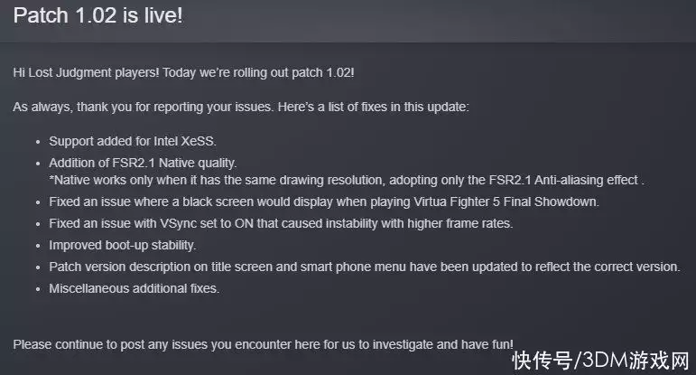 如龙工作室旗下的《审判之眼:死神的遗言》和《审判之逝:湮灭的记忆》推出1.02更新补丁,将为增加对英特尔全新超级采样技术XeSS的支持。两款游戏现已登陆PC平台,正在 好评发售...