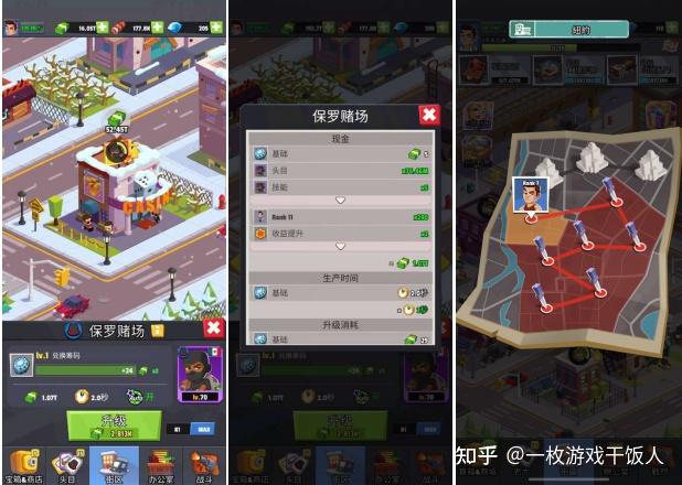 1. 每个章节内各个建筑通过战斗或者花费现金的方式占领建筑,建筑被占领后自动生产金钱;占领之后主要通过消耗金钱升级建筑提升生产效率,除此之外,还可通过 指派头目、升级头...