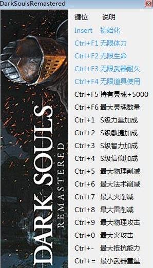 资源说明: 黑暗之魂重制版 v1.01修改器,由“peizhaochen”制作,具有无限体力,无限生命,无限武器耐久,无限道具使用,持有灵魂+5000,最大灵魂数量登二十一项修改器功能,本站提供黑暗之魂重制版修改器,需要的玩家不要错过哦! 资源详情: 键位功能说明: Insert - 初始化 Ctrl+F1 - 无限体力 Ctrl+F2 - 无限生命 Ctrl+F3 - 无限武器耐久 Ctrl+F4 - 无限道具使用 Ctrl+F5 - 持有灵魂+5000 Ctrl+F6 - 最大灵魂数量 Ctrl+1 - S级力量加成 Ctrl+2 - S级敏捷加成 Ctrl+3 - S级智力加成 Ctrl+4 - S级信仰加成 Ctrl+5 - 最大物理削减 Ctrl+6 - 最大法术削减 Ctrl+7 - 最大火削减 Ctrl+8 - 最大雷削减 Ctrl+9 - 最大物理攻击 Ctrl+0 - 最大火攻击 Ctrl+- - 最大抵抗能力 Ctrl+= - 最小武器重量 Alt+1 - 人性+1 Alt+2 - 最大人性 Alt+= - 超级速度 注意事项: 1.Ctrl+1至Ctrl+=为装备修改, 使用方法: 1.暂停[Esc]选择装备武器防御等物品菜单 2.选择武器栏 3.选择武器 4.切换详细信息[F] 5.修改 6.上下切换武器刷新当前数值。 使用说明: 修改器使用说明: 1.了解注意事项 2.打开游戏 3.进入场景 4.开启修改器"初始化"项 5.使用修改项(开启需要条件会在注意事项中说明) 6.如没有另外说明,数字键均非小键盘。 7.Ctrl+1的正确按法,先按住Ctrl再按1。 8.修改器正确关闭方法,先关开着的其他修改项,最后关闭初始化。
