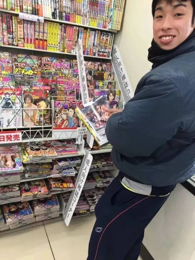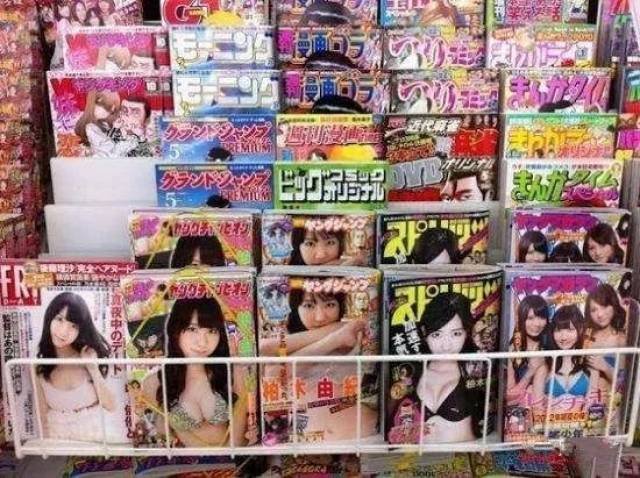 可以说在日本性这个话题是并不忌讳的,在任意的公共场合都能见到成人的东西。便利店的杂志区域有一片专门摆放成人杂志,日本男性也熬不避讳,就像要购买日常品一样站在书架前翻翻捡捡。