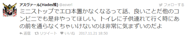 便利店行业人士表示,主要是高龄群体会在便利店购买成人杂志。一位在成人杂志出版社供职过的编辑也曾表示,成人杂志购买者年龄逐年上升,年轻人更习惯通过手机、电脑来获取所需成人信息。出版业不景气使得日本沿街个体书店纷纷倒闭,便利店成为了成人杂志相当重要的销售渠道。 但是随着2020年东京奥运会举办的时间到来,和日本女性群众对便利店摆放成人杂志的不满而导致便利店女性顾客的减少。