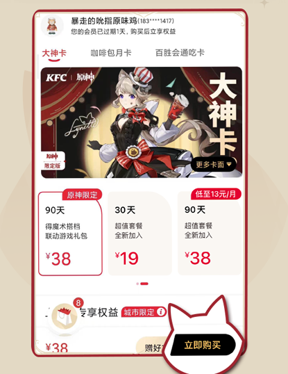 在最近,肯德基发布了和原神联动的活动,在活动开始之后可以通过购买肯德基套餐来获得对应的联动周边奖励,那么有小伙伴好奇肯德基联动2024限定版大神卡怎么购买,下面就来告诉大家。