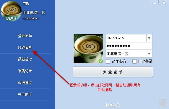 1、最新活动 汇聚最新资讯和活动信息,更快了解全方位的游戏动态。 2、一键领取 最新CF活动道具一键领取到仓库,简单又方便。 3、消费记录 游戏内装备获取记录,活动道具领取记录,一键查询。 4、战绩查询 游戏内当日战绩和历史战绩,CF活动助手一键查询。 5、定时抢领 CF活动助手独有活动道具定时抢领功能,助您获得限量武器,掌控全局。 6、仓库查询 无需登录游戏客户端,游戏仓库内装备信息实时查询。 7、批量签到 CF聚豆、CF帮豆、CF论坛、QQ会员、QQ钱包、QQ群等多种功能一键签到。 8、永久免费 CF活动助手永久免费使用,绝不向用户收取一分钱,您的使用就是我们的动力! 1、登录账号,并绑定游戏大区