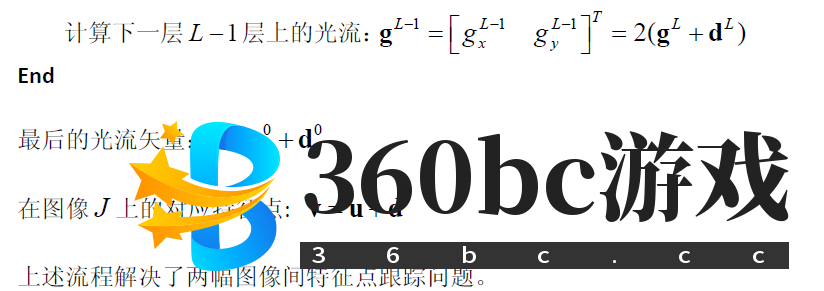 我们用数学的思想重新描述在L层和L+1层迭代运算,假定在第L层有对被跟踪目标的位置有个大致估计,而从第L+1层传递到L层的运动矢量,即光流计算初值为 为了在L层上计算光流和仿射变换矩阵,需要重新定义在L层上的匹配误差ξL: